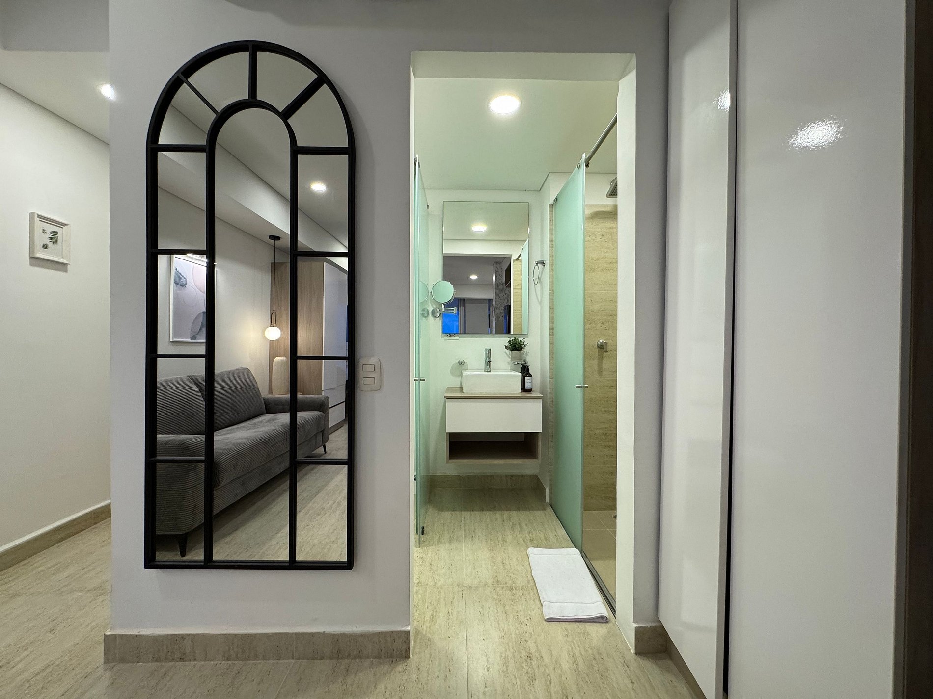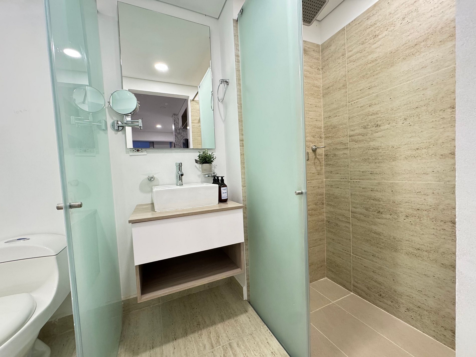 • Baño con acabados tipo hotel y ducha en vidrio templado.