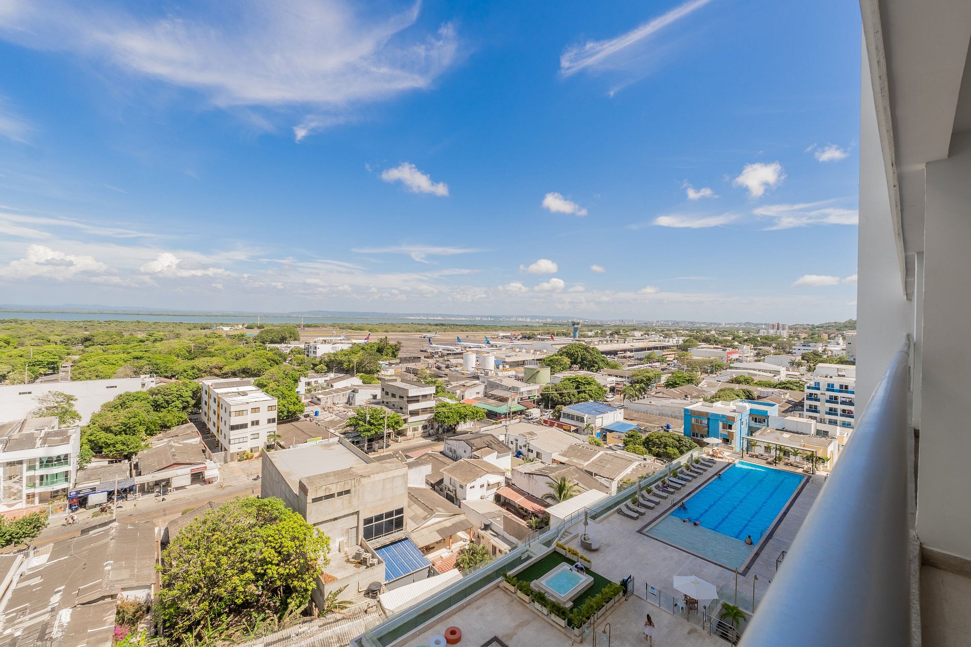 Disfruta esta elegante suite en el piso 10 del edificio Cartagena Beach. Con diseño contemporáneo y tonos cálidos. Con cama Queen y sofá cama doble de lujo, ambos muy cómodos. Su amplia terraza amoblada tiene vista a la Ciénaga y la ciudad. Cocina moderna totalmente equipada, Smart TV, aire acondicionado y Wi-Fi rápido. El edificio cuenta con piscina semiolímpica, piscina infantil, sauna, turco, spa, lavandería y acceso directo a la playa. A 5 min del aeropuerto y 10 del Centro Histórico