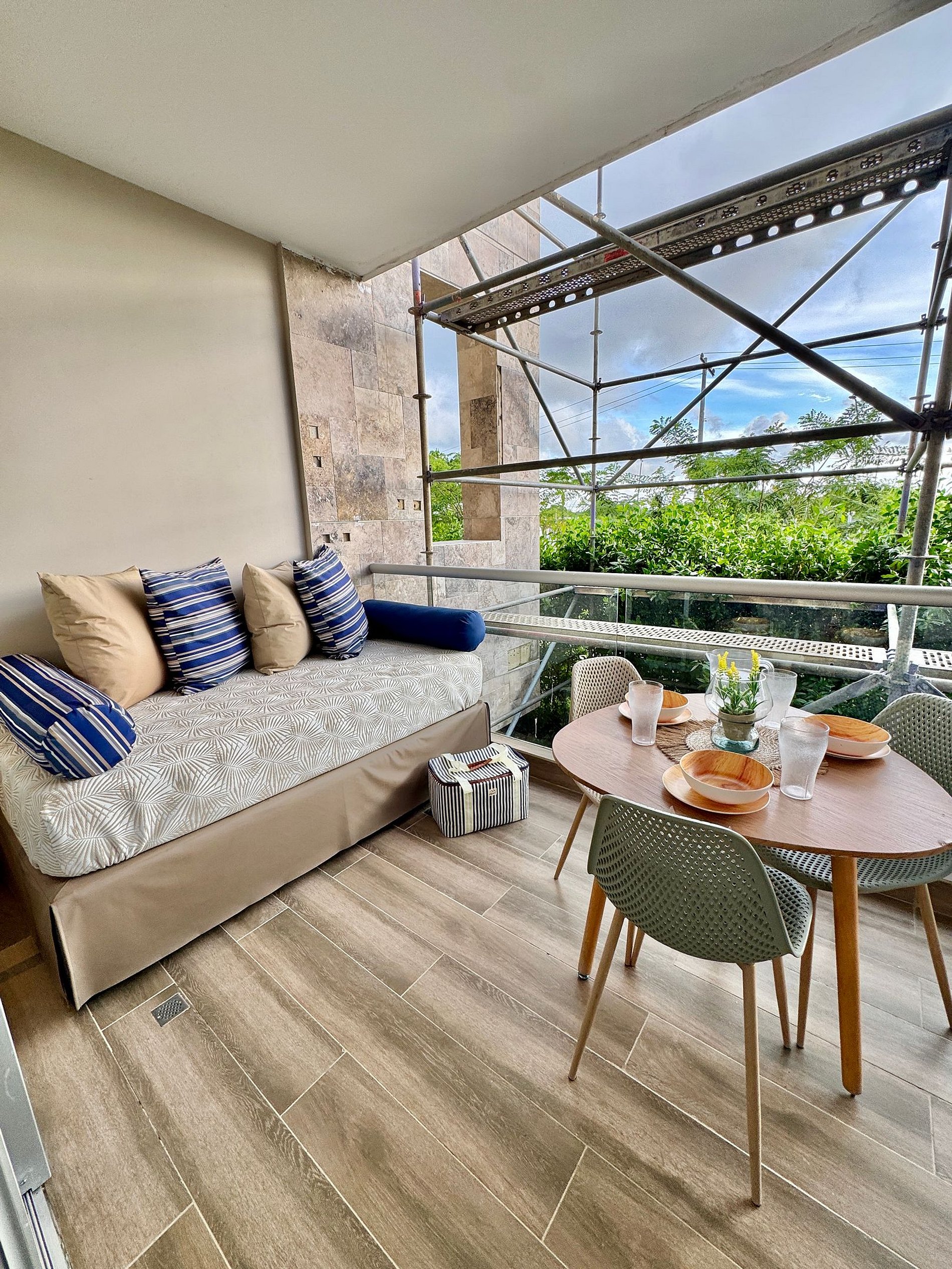 • Balcón amoblado con comedor exterior para compartir en familia.