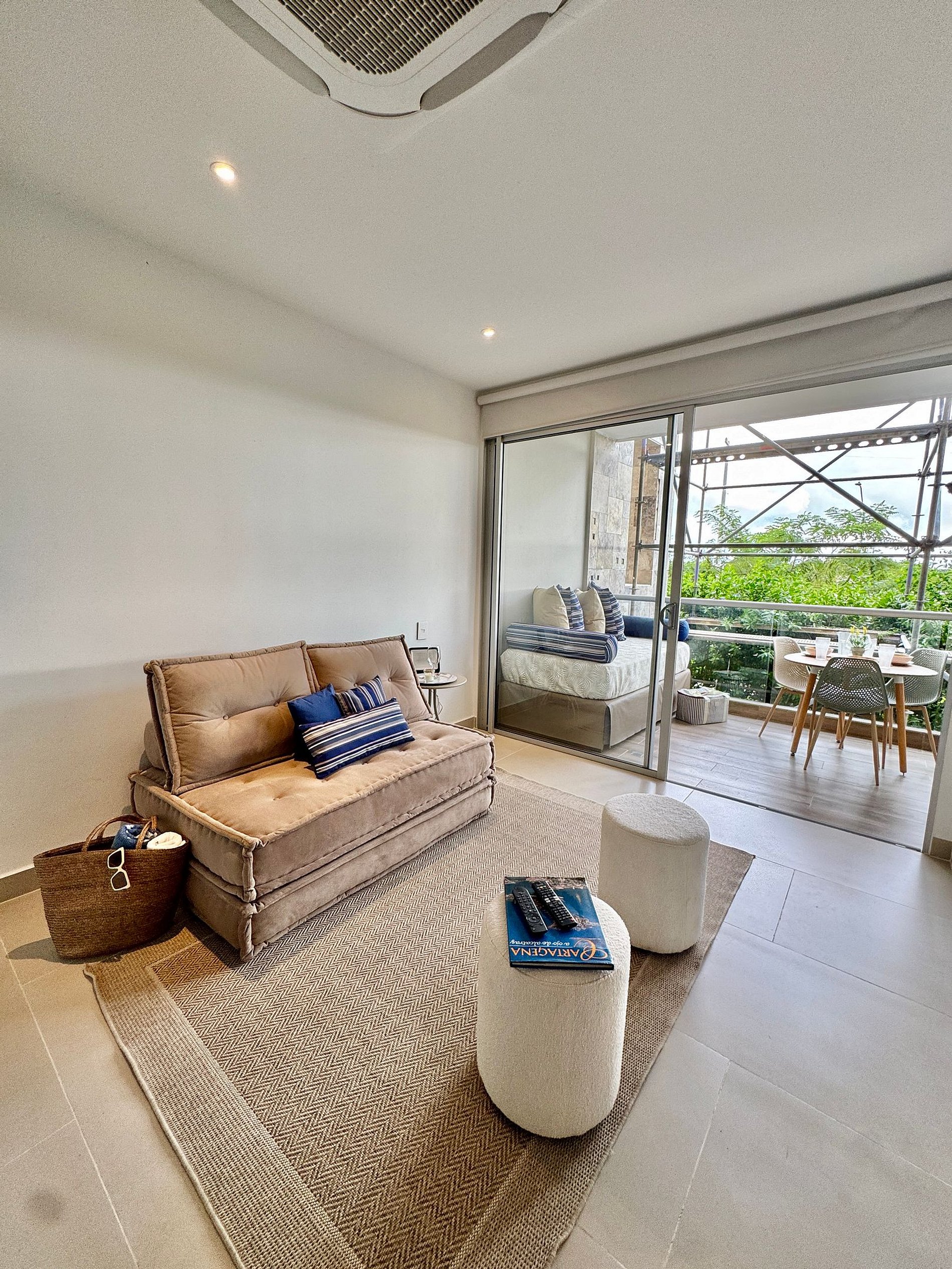 Moderno y acogedor apartamento familiar en Bahía Kristal Privé, ideal para 4 personas. Cuenta con cama queen, sofá cama y cama tarima doble, cocina completamente equipada, lavadora secadora y balcón con comedor exterior. Espacios amplios, luminosos y confortables, perfectos para disfrutar en familia con todas las comodidades de un hogar moderno.