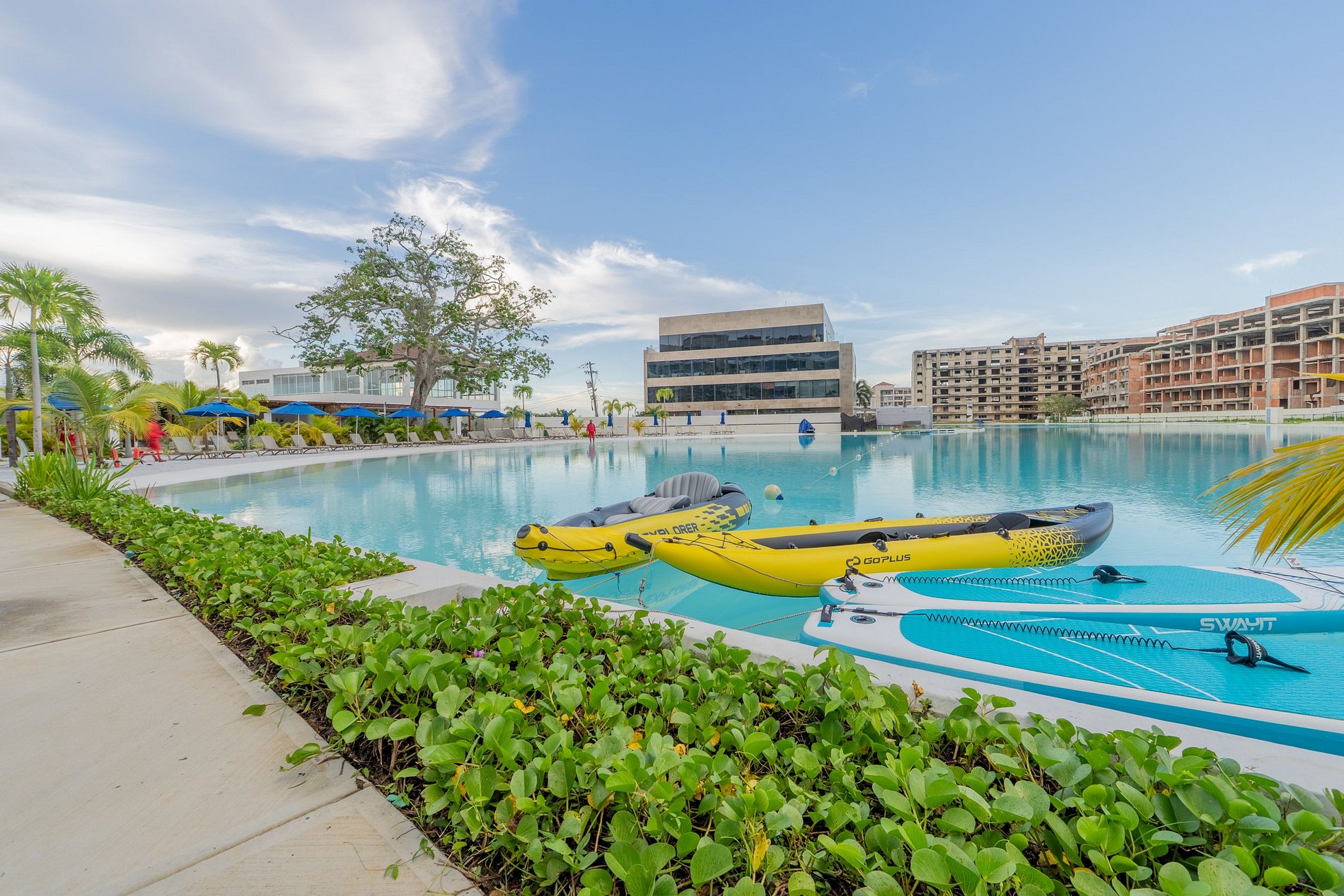 Disfruta esta moderna suite familiar en Bahía Kristal Privé, ideal para 4 personas. Ofrece cama queen, sofá cama y cama tarima doble, cocina totalmente equipada, lavadora secadora y balcón con comedor exterior. Incluye kajak privado para explorar la laguna cristalina del conjunto, que cuenta con playa artificial, piscinas, zonas verdes y deportes acuáticos. Perfecto para familias que buscan descanso, comodidad y diversión en un entorno tipo resort.