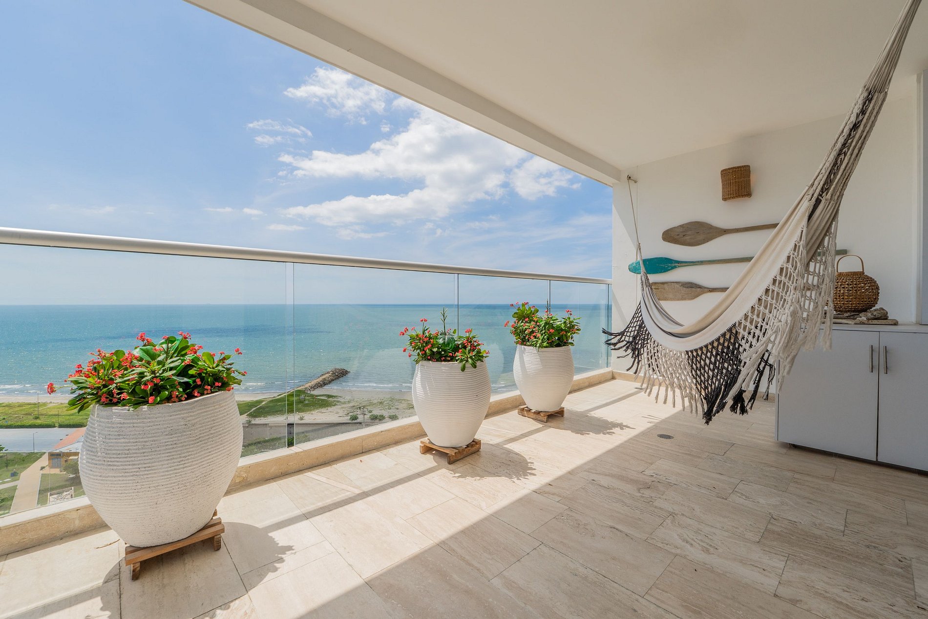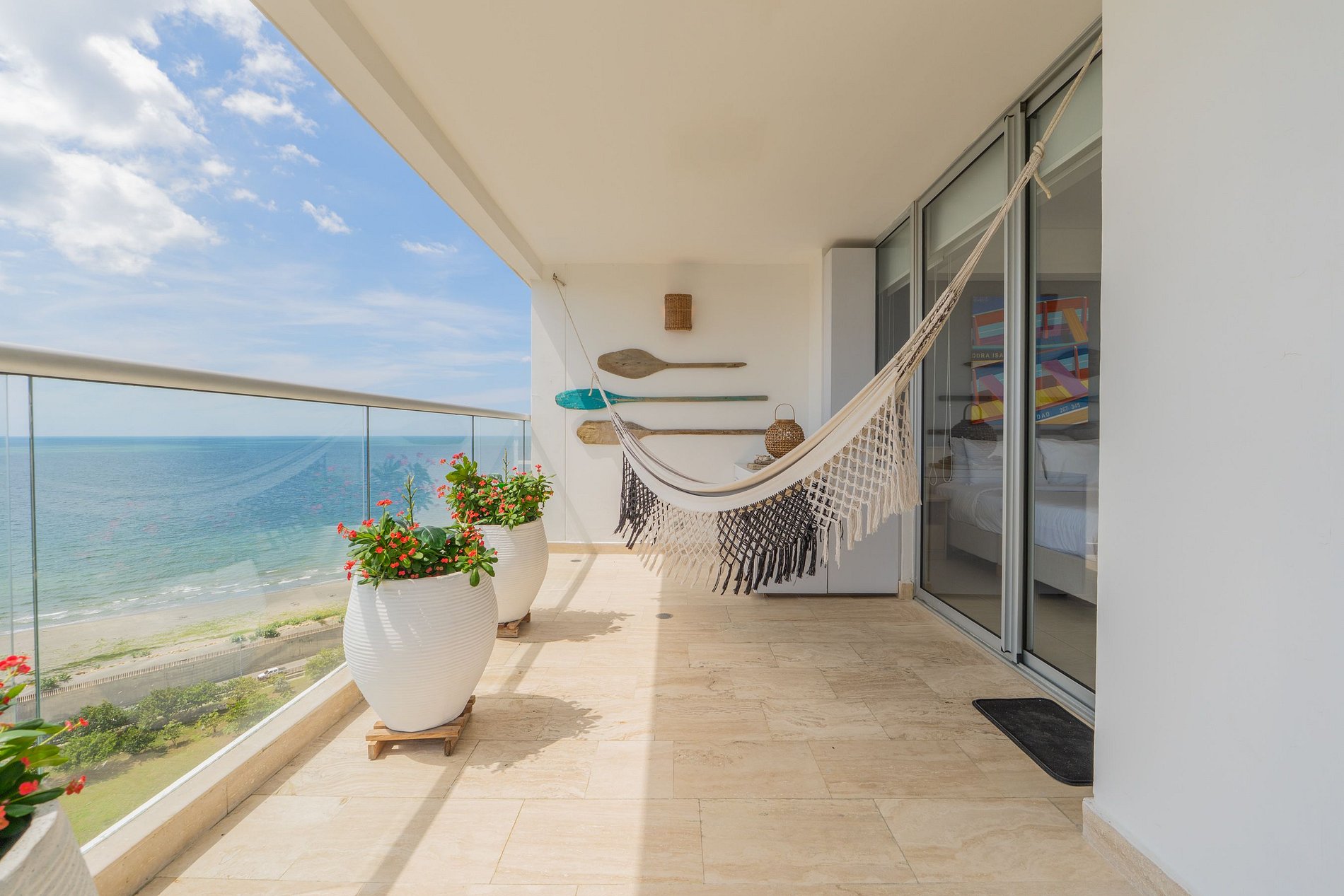 Disfruta de un espacio único en este apartamento con balcón panorámico y hamaca frente al mar. Cuenta con cama queen, cocina totalmente equipada, aire acondicionado, Smart TV y WiFi de alta velocidad. El amplio balcón es ideal para relajarte, desayunar al aire libre o disfrutar de la brisa caribeña con una vista espectacular. Ubicado en el moderno edificio Cartagena Beach, a pocos minutos del aeropuerto y de las principales playas, es perfecto para viajes de descanso, familia o trabajo