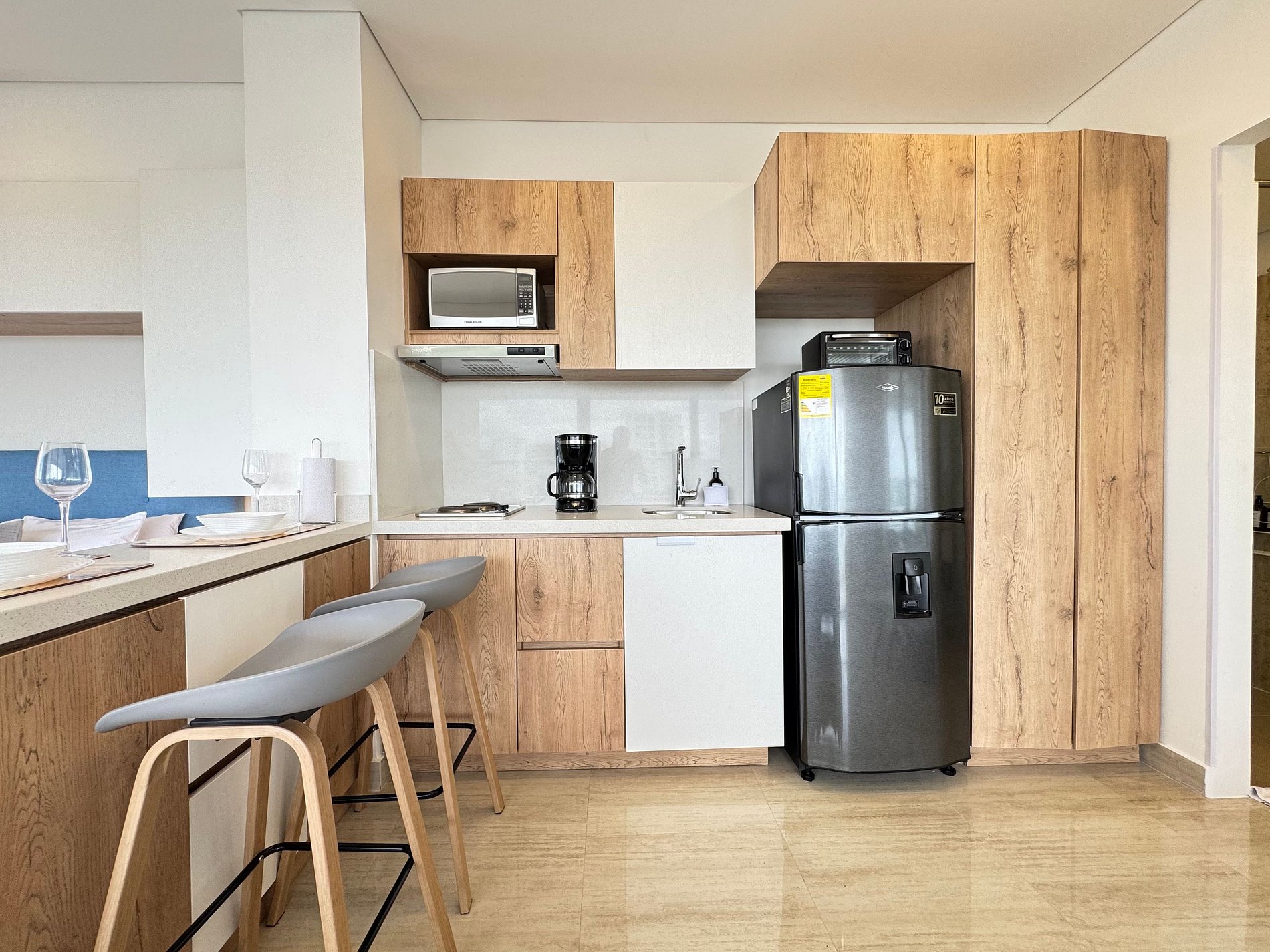 • Barra tipo desayunador con sillas altas