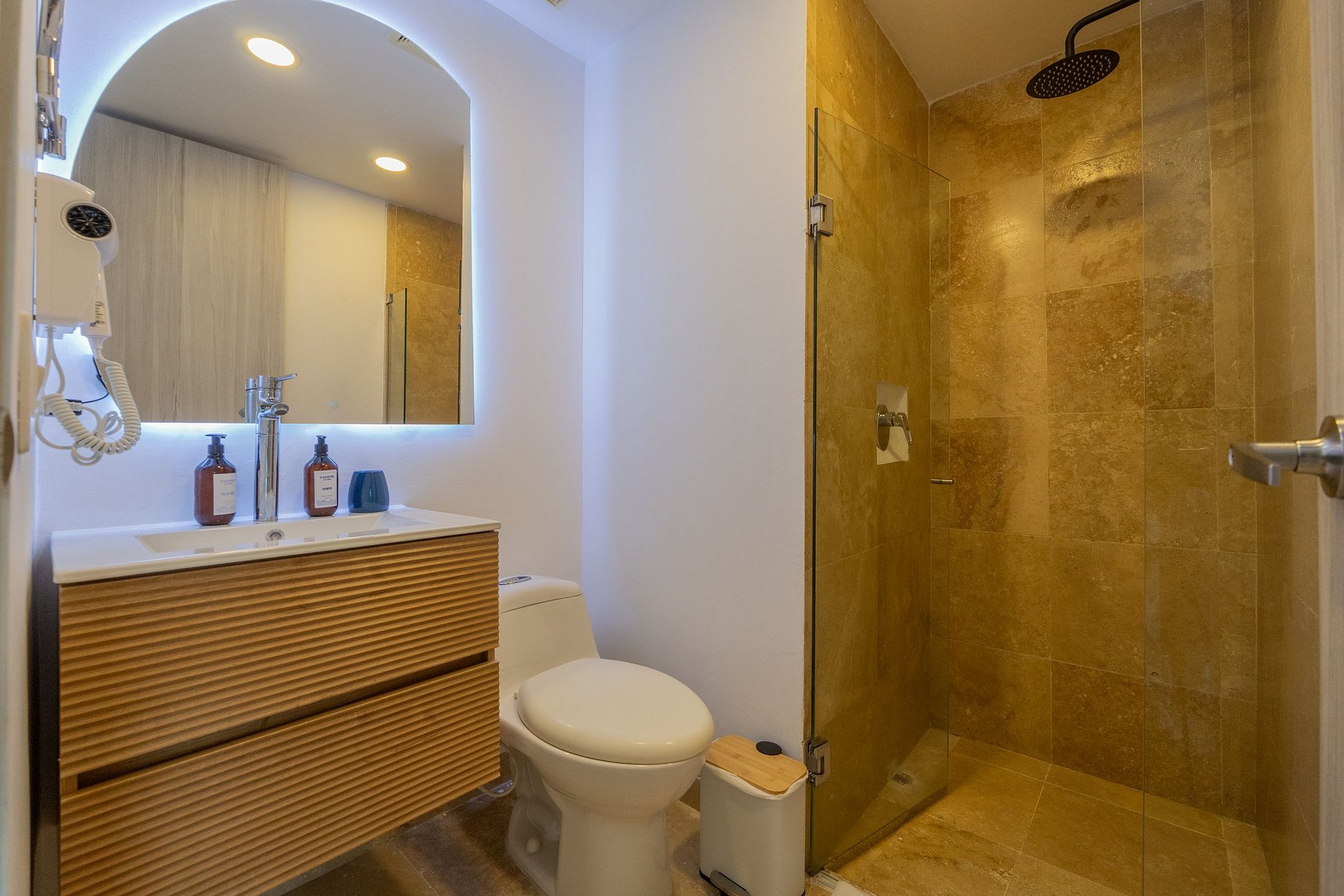• 2 baños con ducha tipo lluvia, agua caliente y espejo iluminado