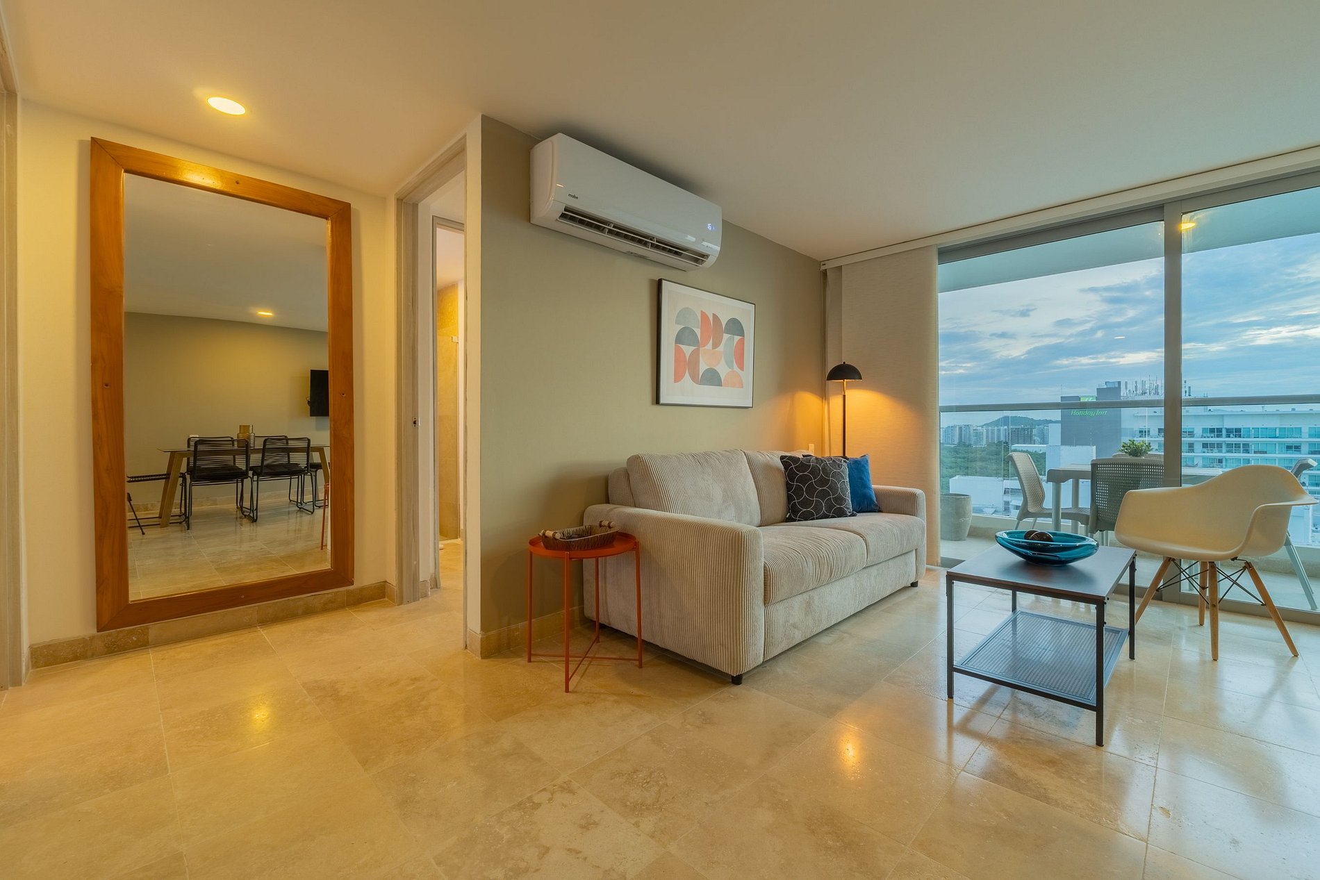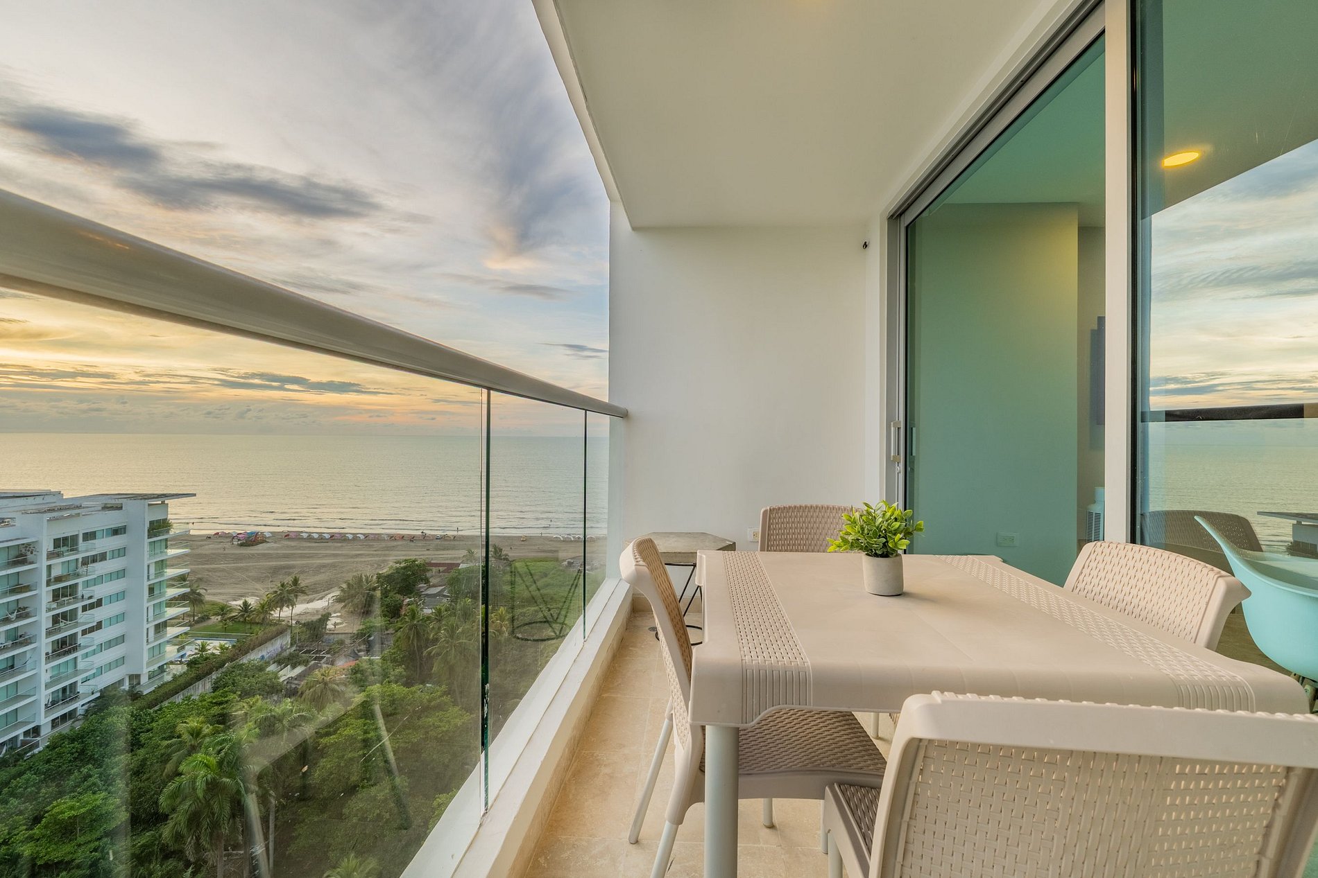 Disfruta una experiencia única con vista al mar, cienaga y ciudad, en el piso 13 del Seaway, dentro del exclusivo complejo Sonesta en la zona de Morros. Apartamento nuevo y moderno con dos habitaciones en suite, sofá cama queen, cocina equipada con air fryer, cafetera, licuadora y menaje completo. Balcón amoblado con vista panorámica al mar, la Ciénaga y la ciudad. Aire acondicionado e internet rápido. Acceso directo a la playa, piscinas, gimnasio, cancha de tenis y parqueadero cubierto incluido