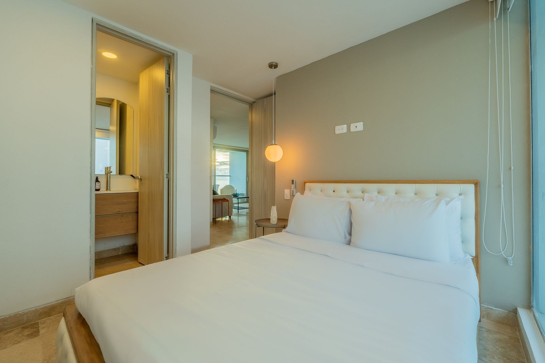 Disfruta una experiencia única con vista al mar, cienaga y ciudad, en el piso 13 del Seaway, dentro del exclusivo complejo Sonesta en la zona de Morros. Apartamento nuevo y moderno con dos habitaciones en suite, sofá cama queen, cocina equipada con air fryer, cafetera, licuadora y menaje completo. Balcón amoblado con vista panorámica al mar, la Ciénaga y la ciudad. Aire acondicionado e internet rápido. Acceso directo a la playa, piscinas, gimnasio, cancha de tenis y parqueadero cubierto incluido