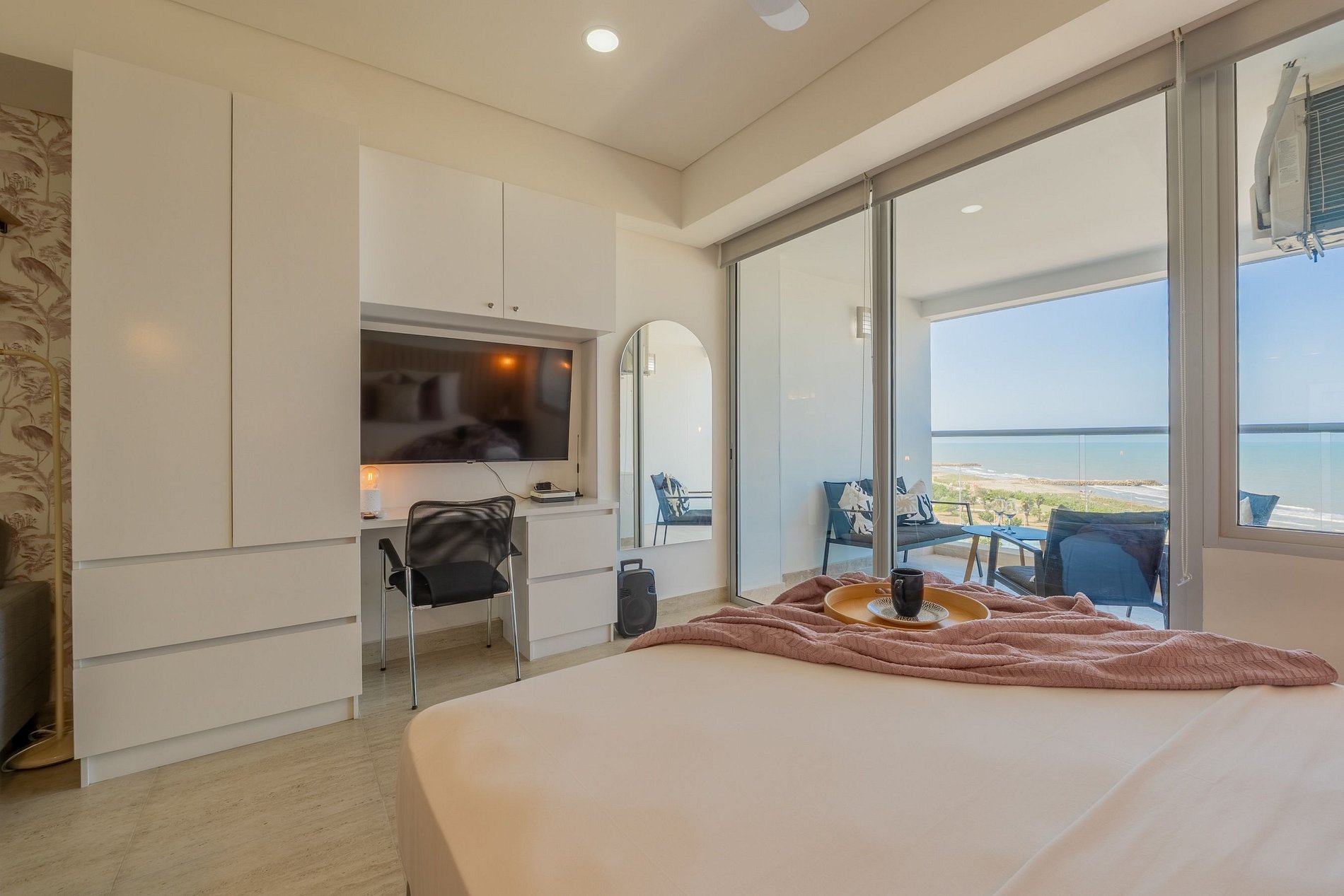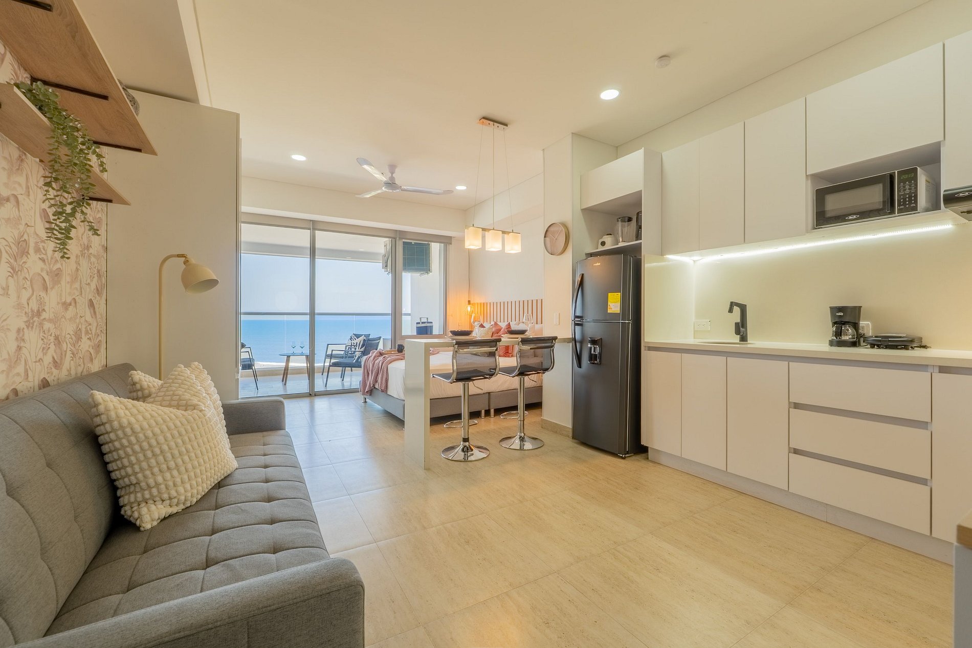Suite Hermosa, luminosa con balcón y vista al mar. Cama Queen, cocina equipada, baño moderno, Wi-Fi veloz y cerradura digital.