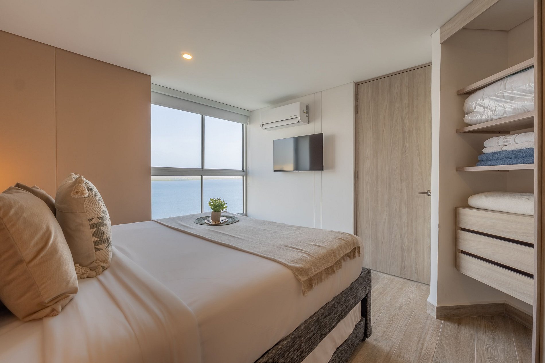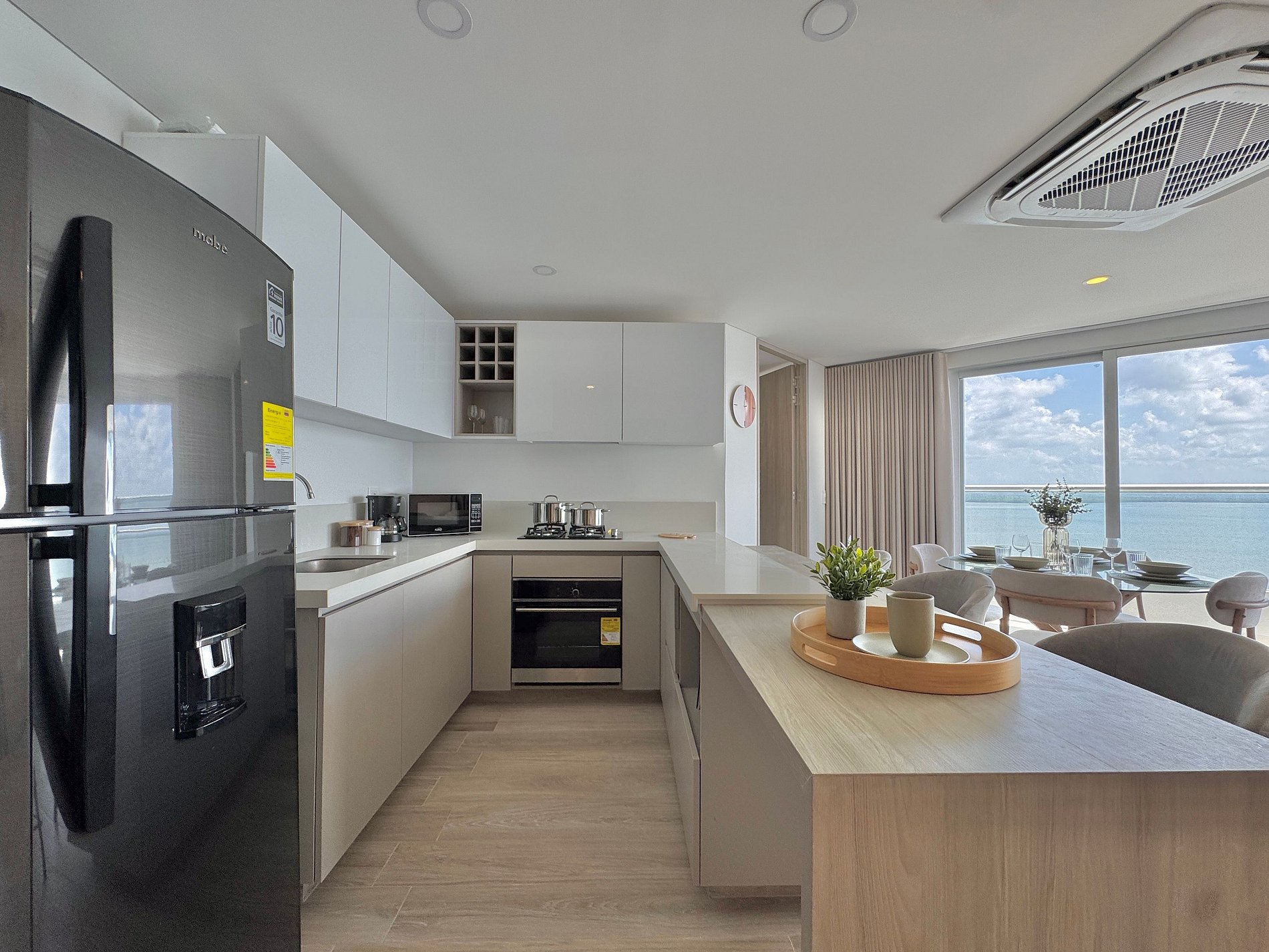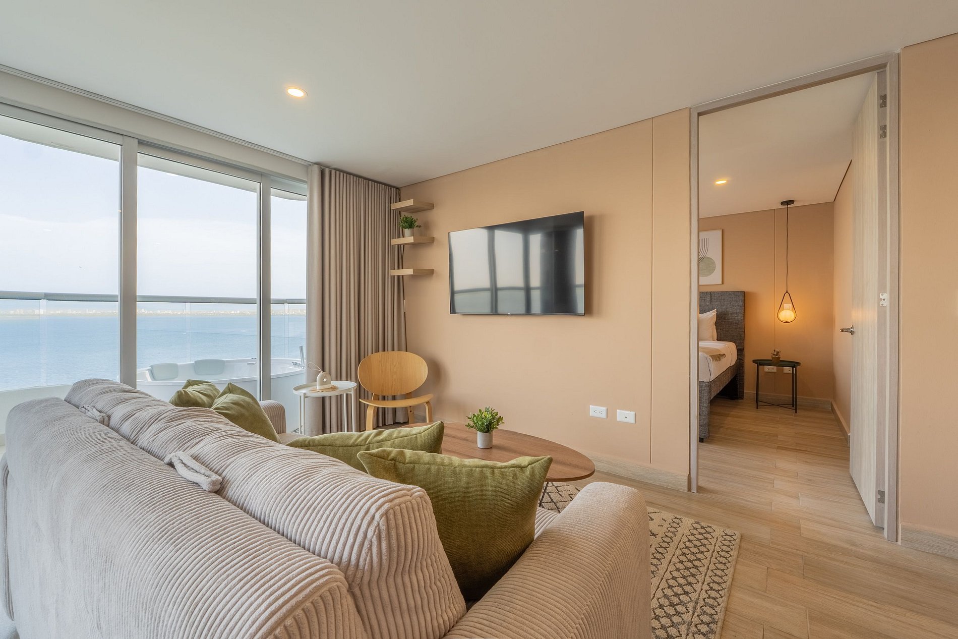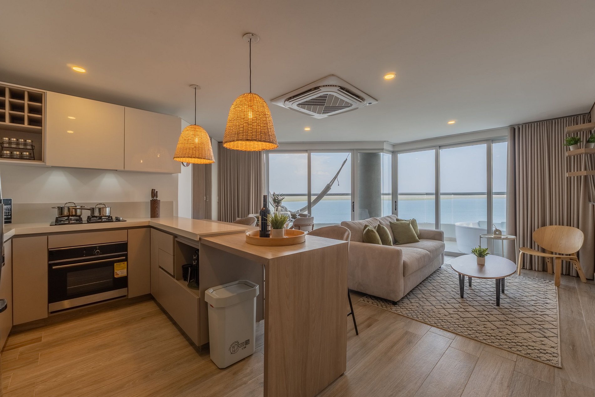 Apartamento premium de 2 habitaciones con vista espectacular a la Ciénaga de la Virgen. Disfruta balcón amplio con jacuzzi privado para dos, naturaleza y amaneceres, con el plus de ver despegar y aterrizar aviones a lo lejos sin ruido molesto. Cuenta con cocina totalmente equipada, zona de lavandería (lavadora y secadora), agua caliente e internet de alta velocidad. Ideal para familias o parejas que buscan comodidad y privacidad.