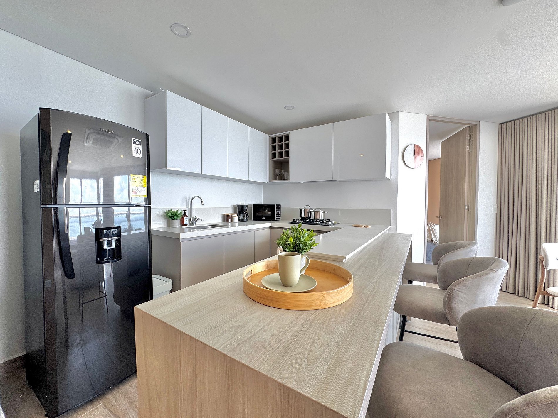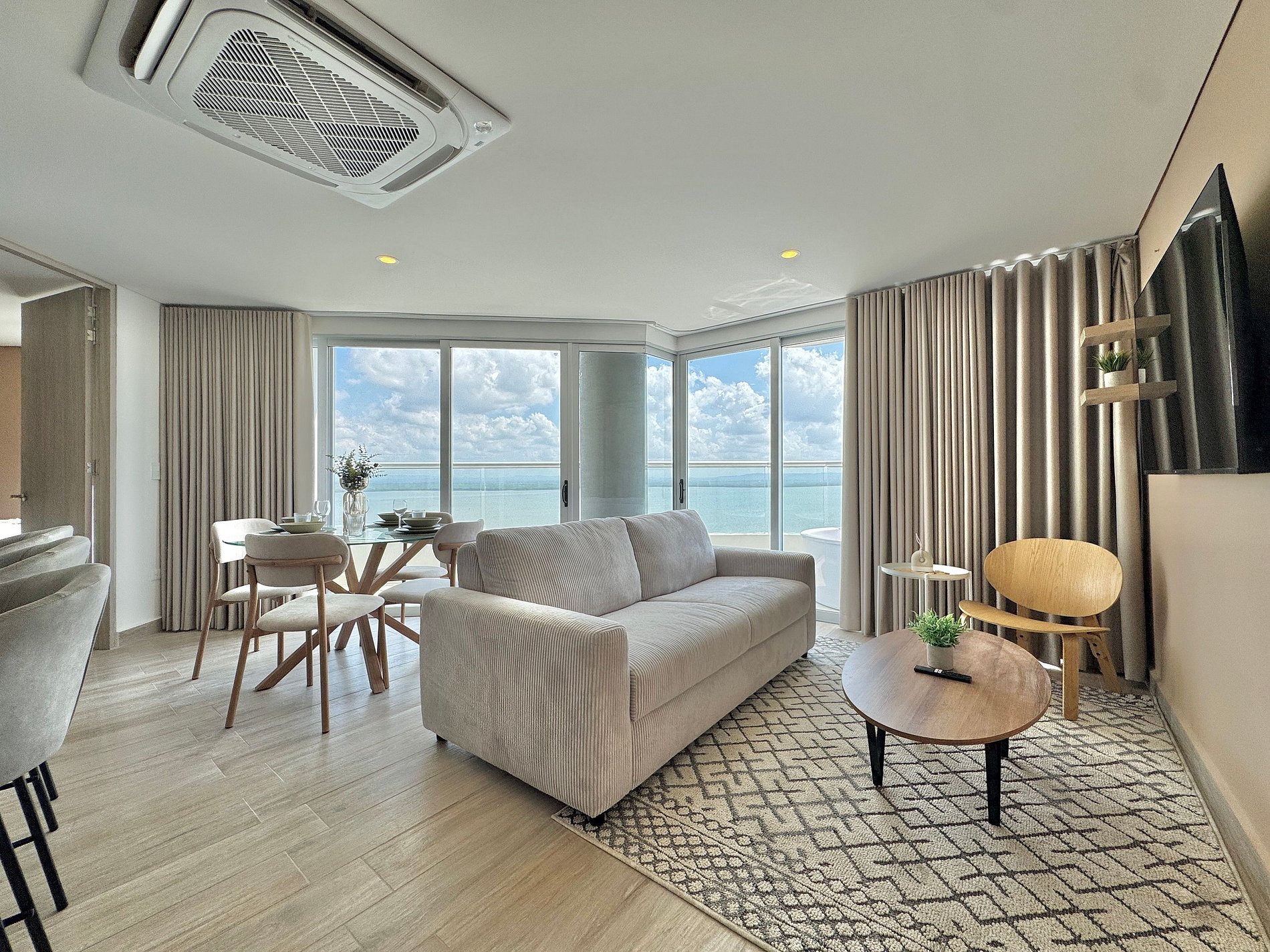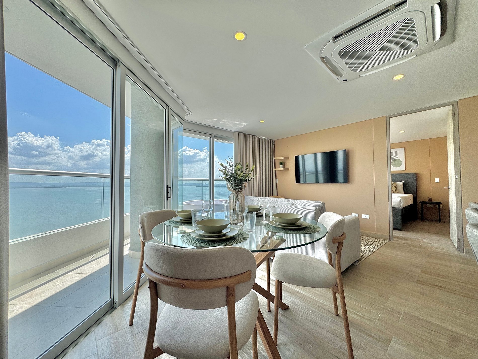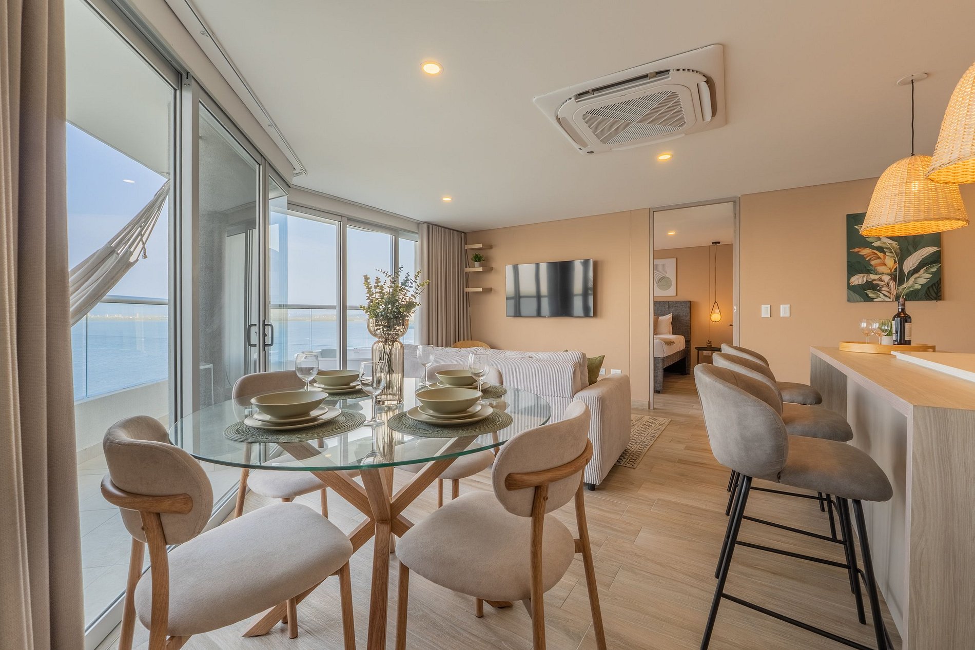 Apartamento premium de 2 habitaciones con vista espectacular a la Ciénaga de la Virgen. Disfruta balcón amplio con jacuzzi privado para dos, naturaleza y amaneceres, con el plus de ver despegar y aterrizar aviones a lo lejos sin ruido molesto. Cuenta con cocina totalmente equipada, zona de lavandería (lavadora y secadora), agua caliente e internet de alta velocidad. Ideal para familias o parejas que buscan comodidad y privacidad.