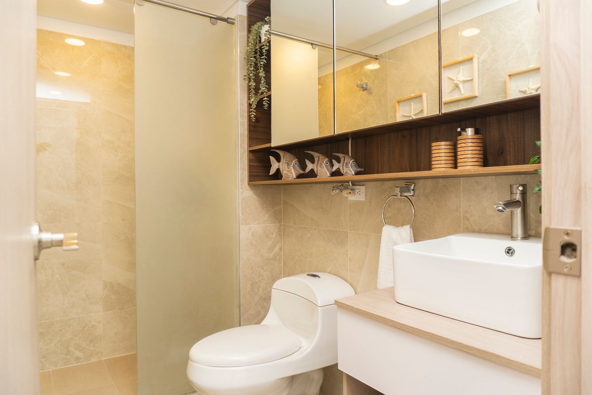 • Baño amplio estilo hotelero con ducha en vidrio templado, agua caliente y excelente presión