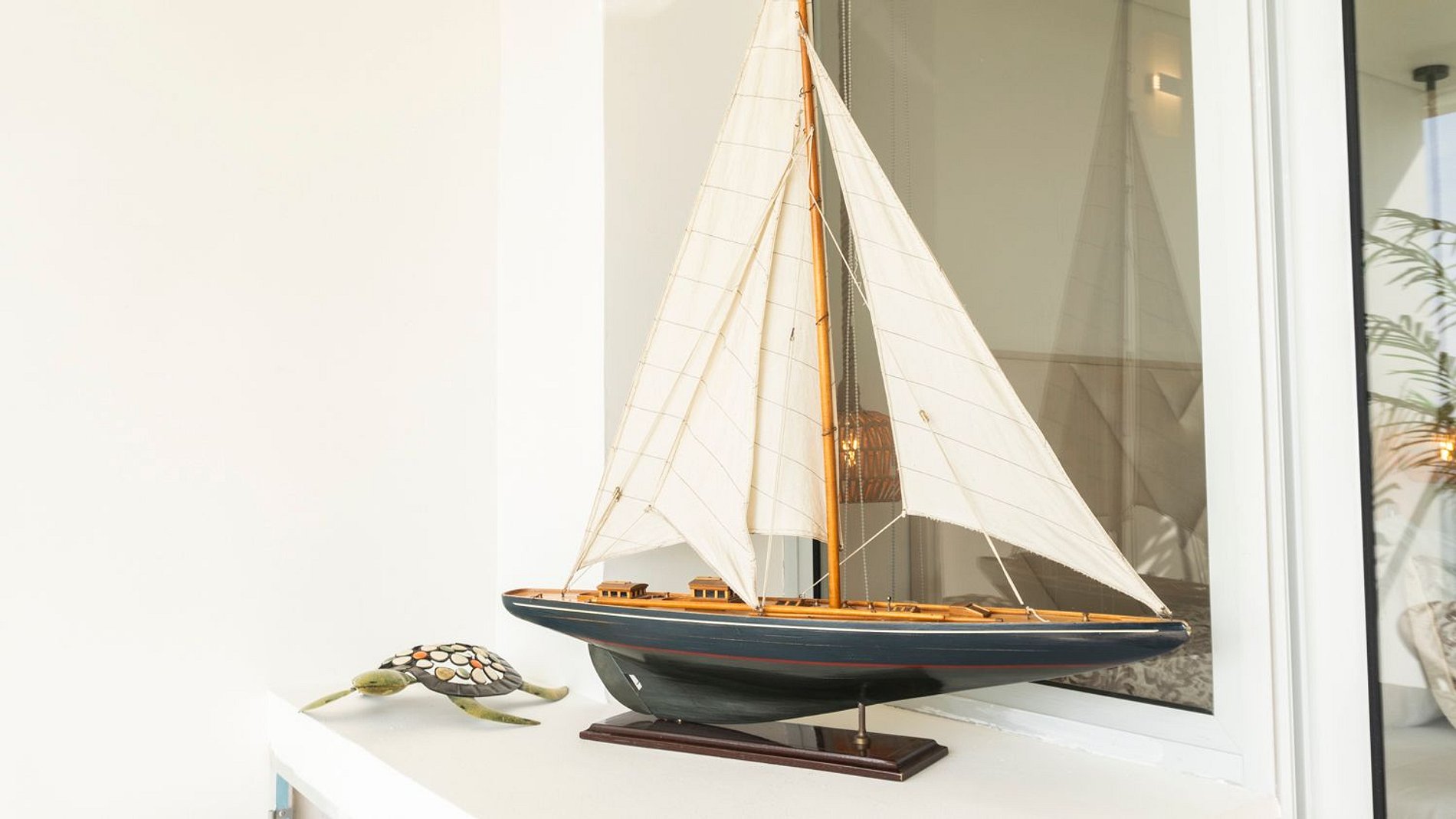 • Decoración moderna con toques costeros: lámparas tejidas, colores arena y detalles náuticos