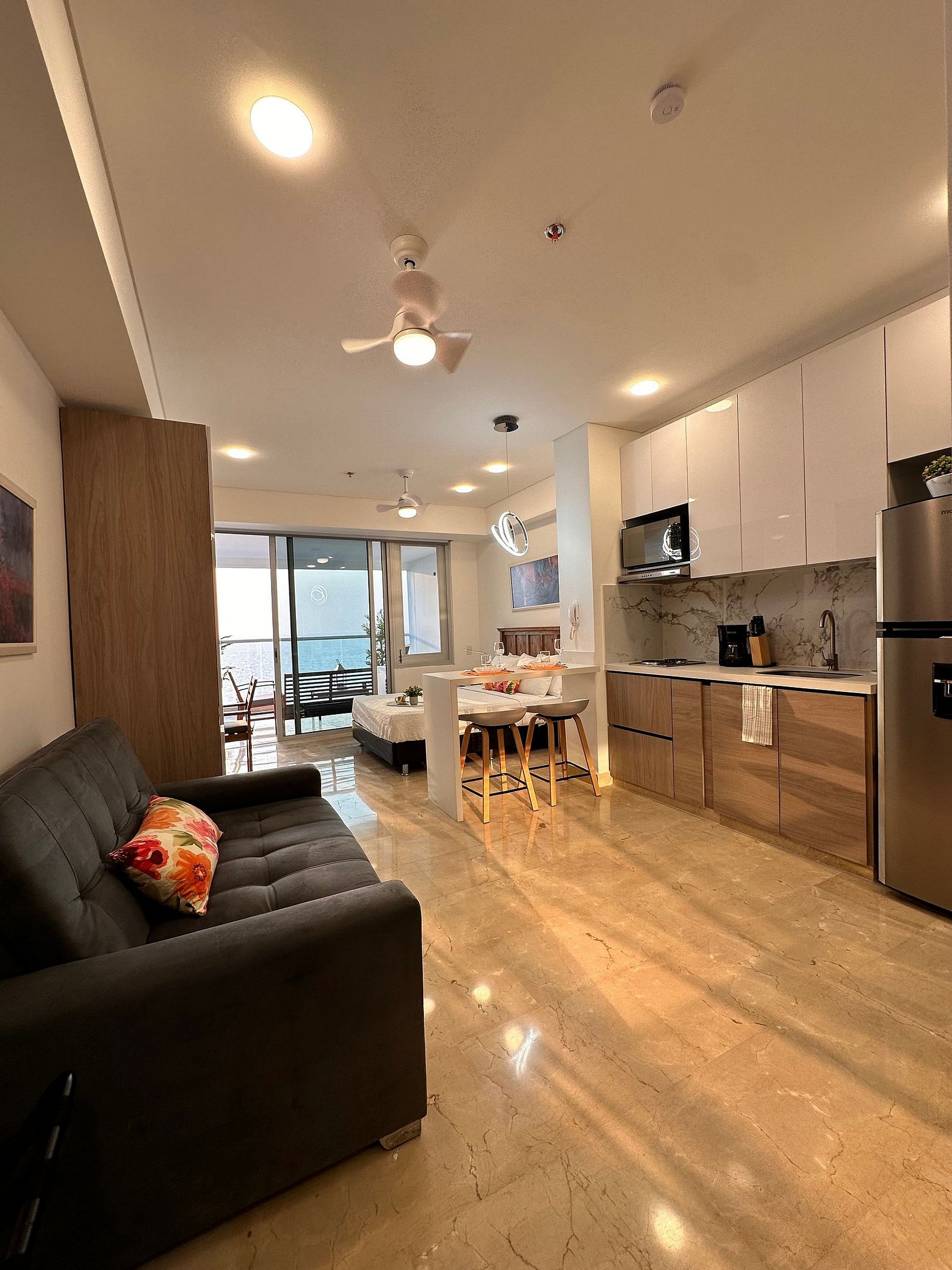 Ubicado en el piso 15, este apartamento ofrece una experiencia única frente al mar Caribe. Su balcón privado es perfecto para disfrutar la brisa y atardeceres de ensueño. Con decoración moderna y distribución abierta, combina comodidad, luminosidad y estilo en cada rincón.