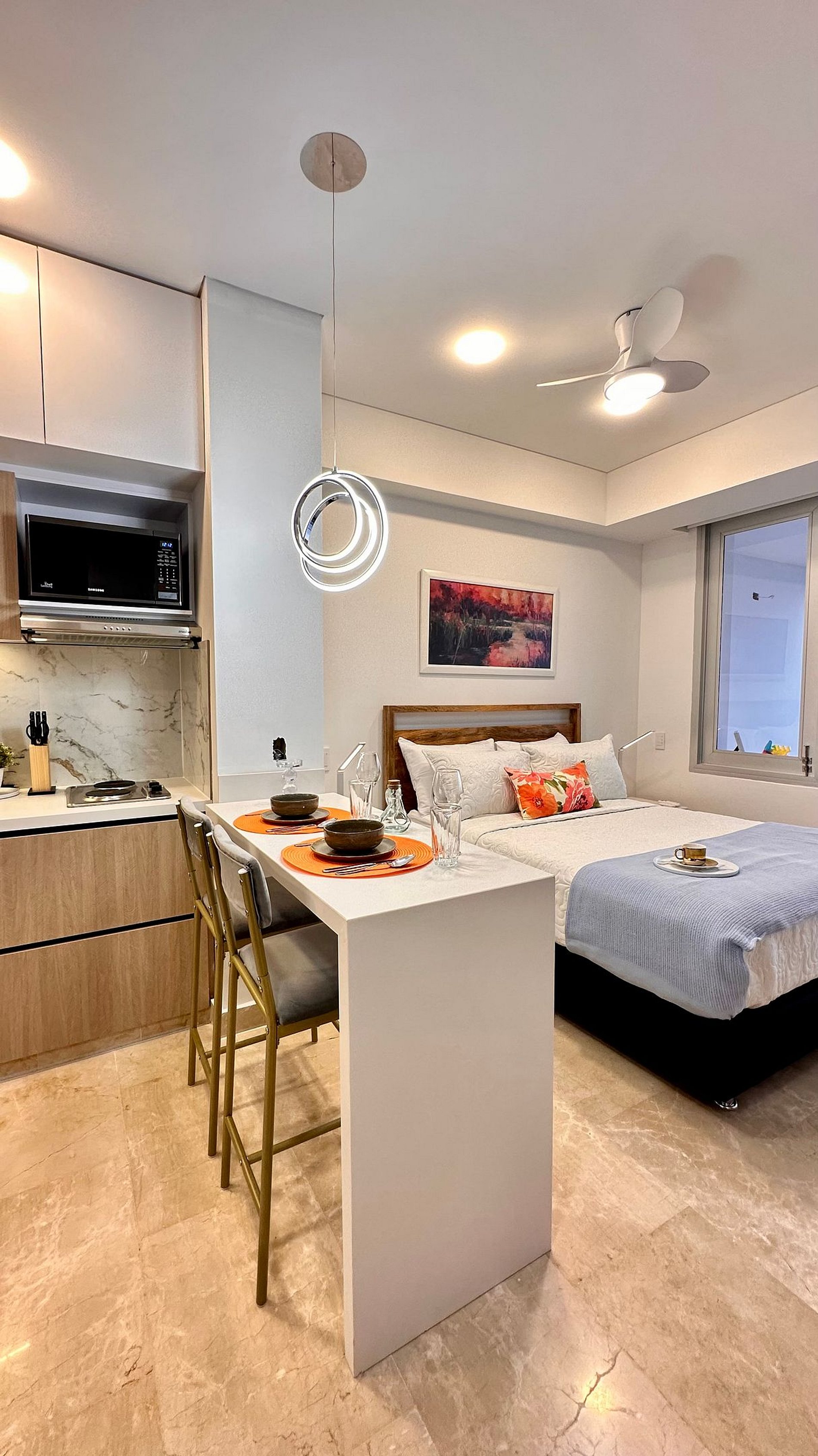 En el piso 15, este moderno apartamento ofrece cama doble, sofá cama sencillo, aire acondicionado, cocina equipada, comedor y sala con Smart TV, además de balcón con vista panorámica. El edificio cuenta con piscina semiolímpica, piscina infantil, sauna, turco y vigilancia 24h. Ubicado a solo 2 min del aeropuerto y a un paso de la playa, cruzando el parque lineal. Ideal para descansar, disfrutar del sol y estar cerca de restaurantes y comercios.