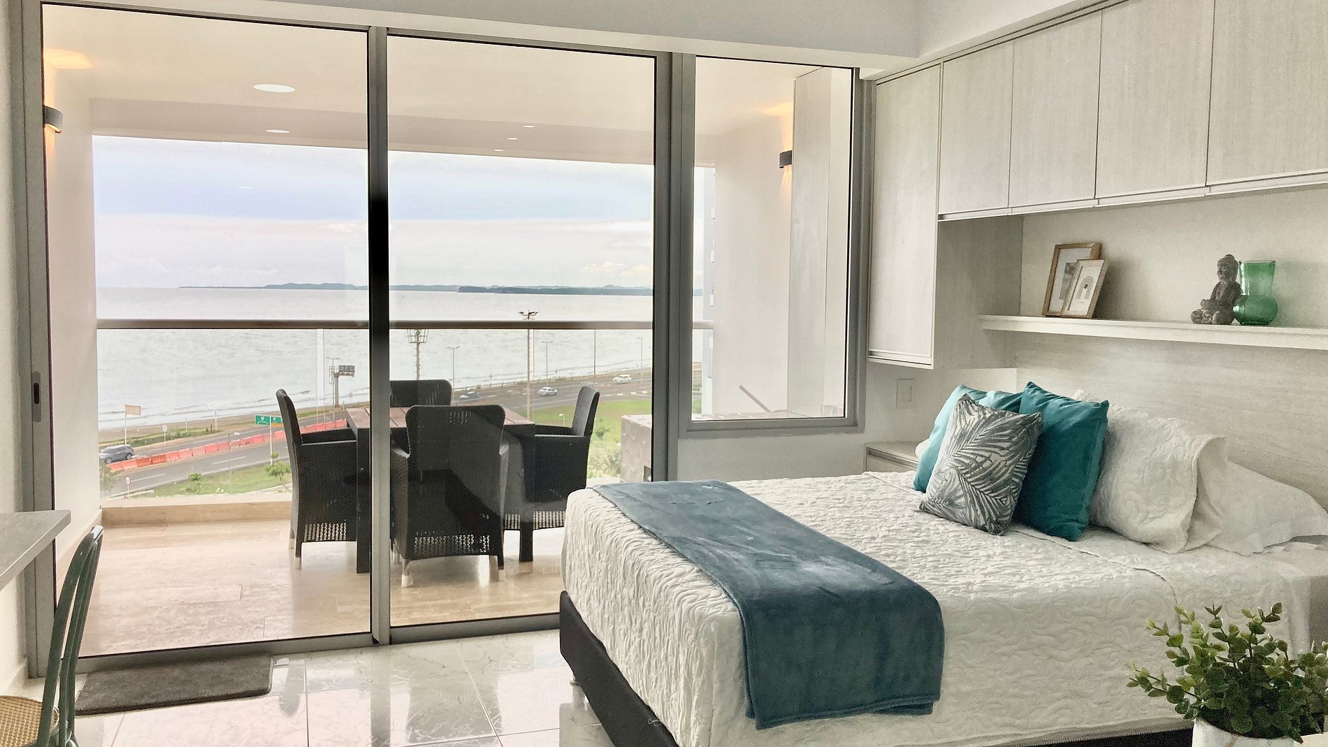CB726 | Suite moderna frente al mar con balcón y cocina con isla