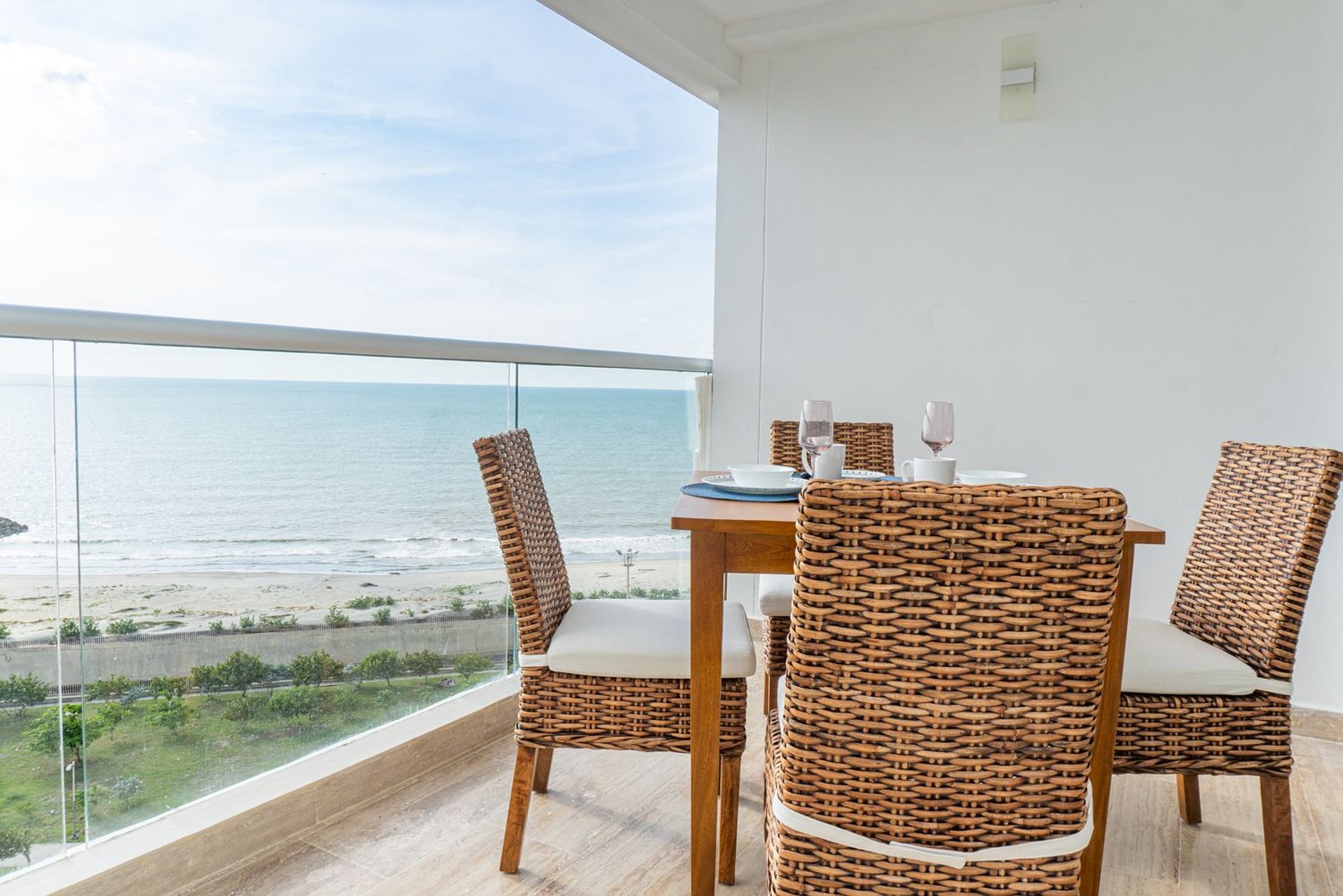 • Balcón amplio con comedor exterior (mesa y sillas en fibras naturales)