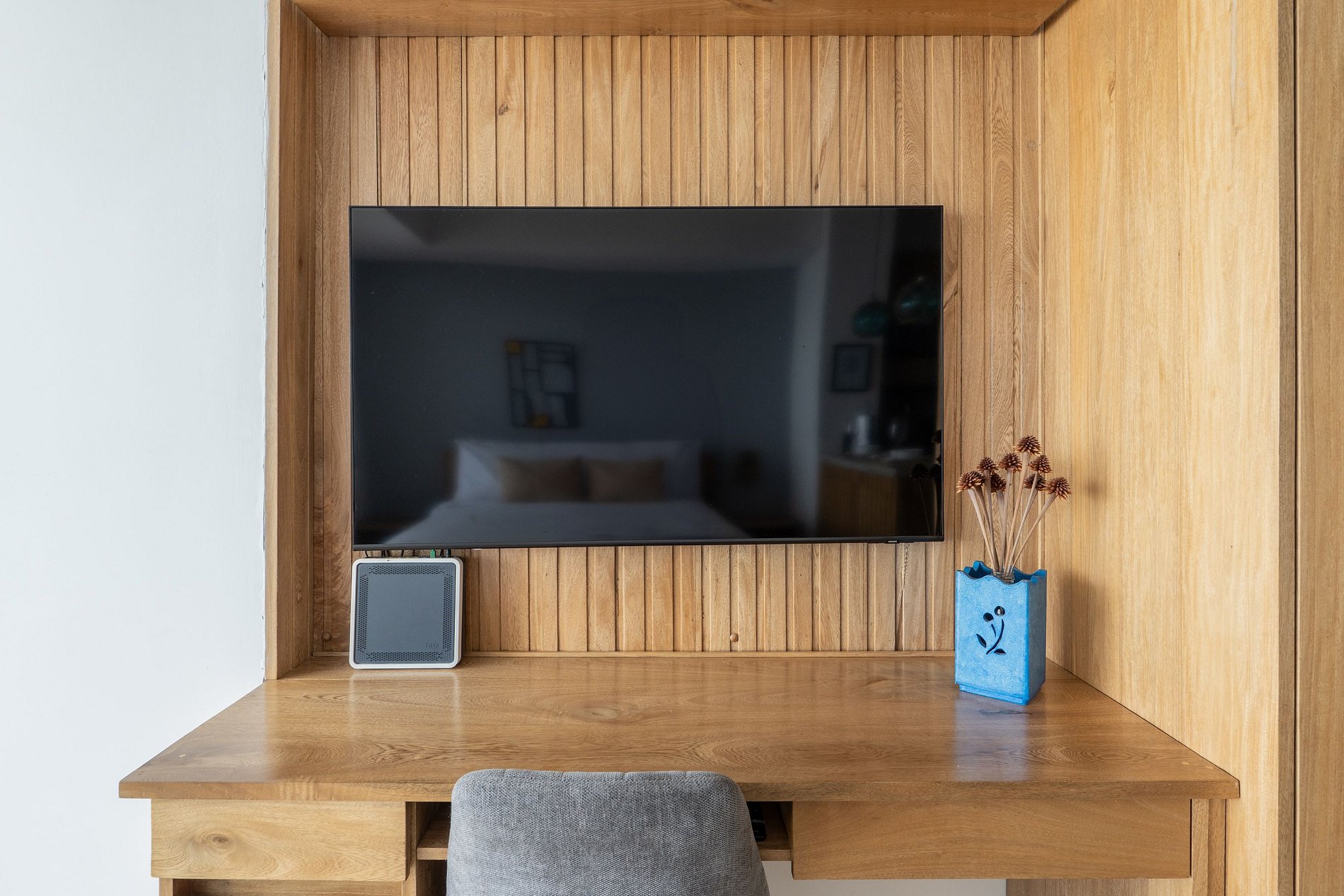 • Smart TV sobre panel de madera