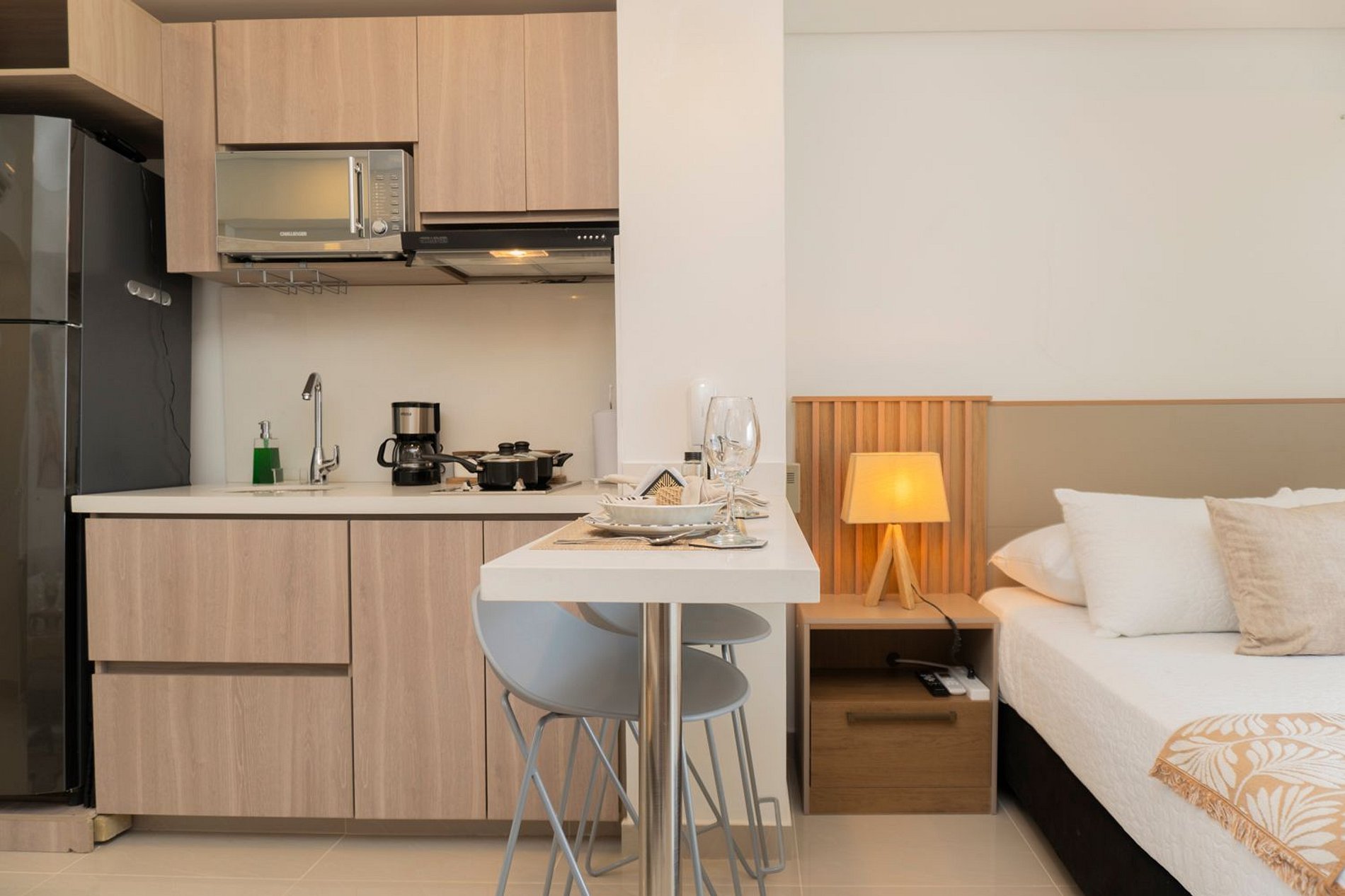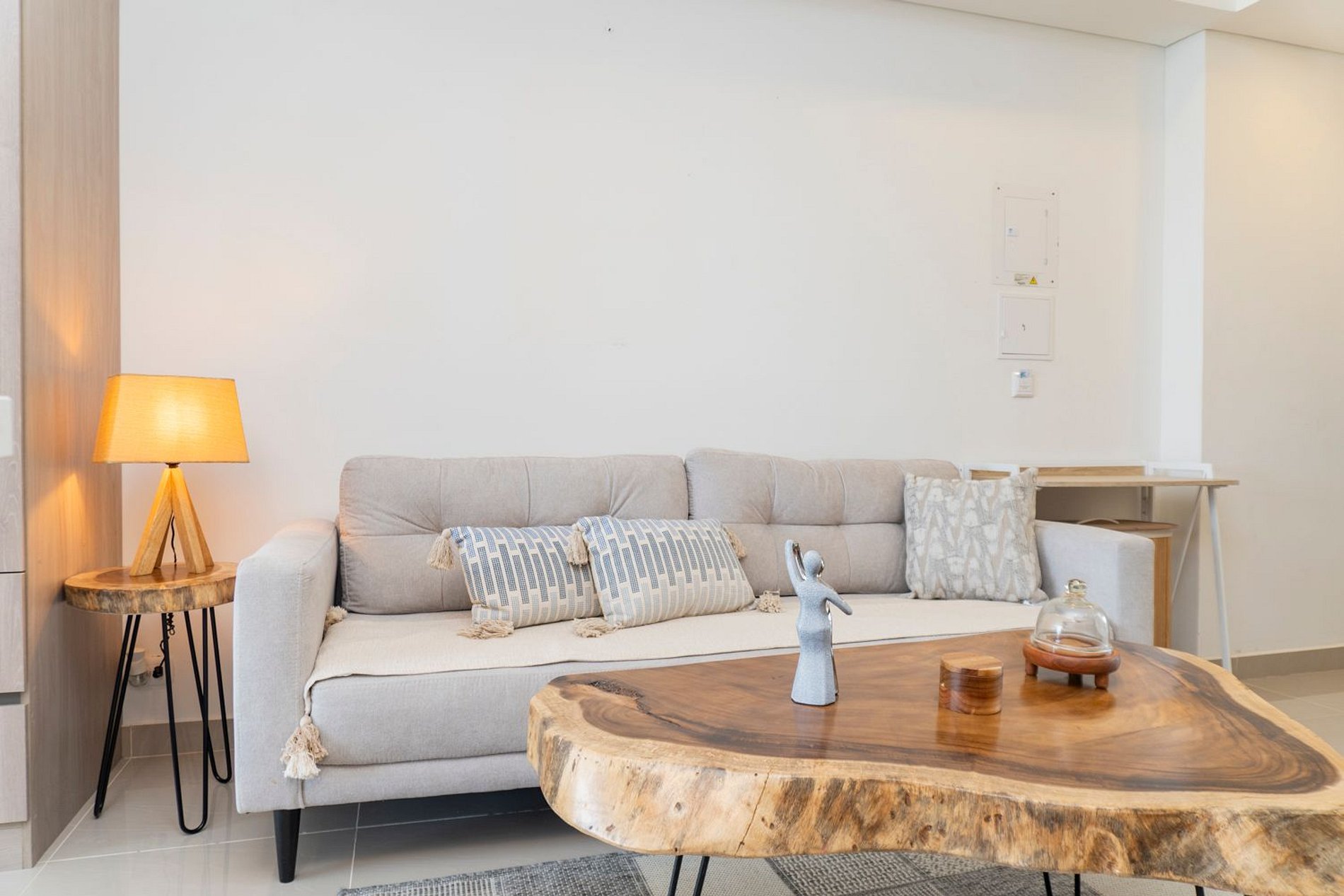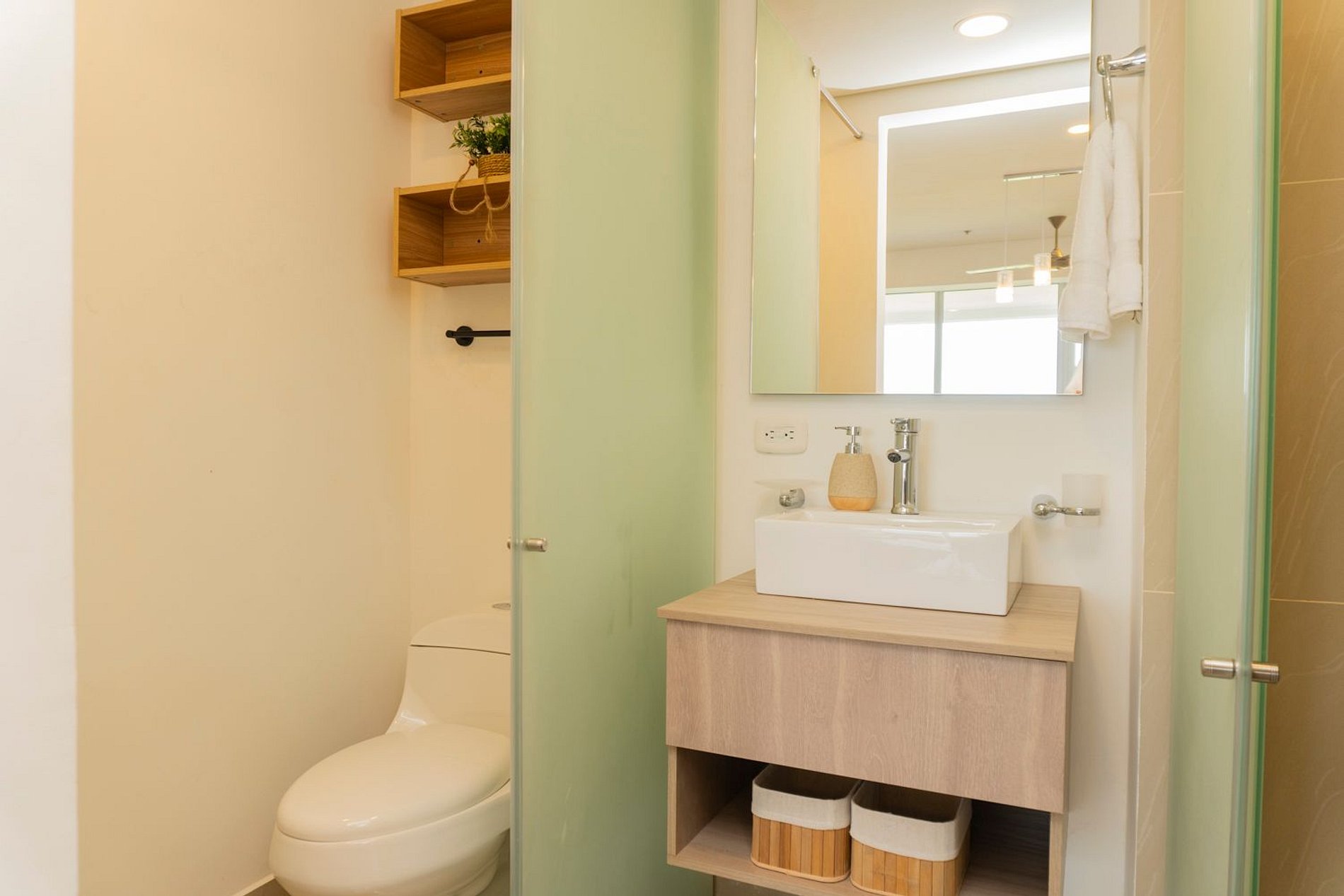 Apartamento moderno en el piso 6 con terraza privada y vista directa al mar y la Ciénaga. Espacio cómodo, luminoso y perfectamente equipado para estancias de trabajo o descanso.