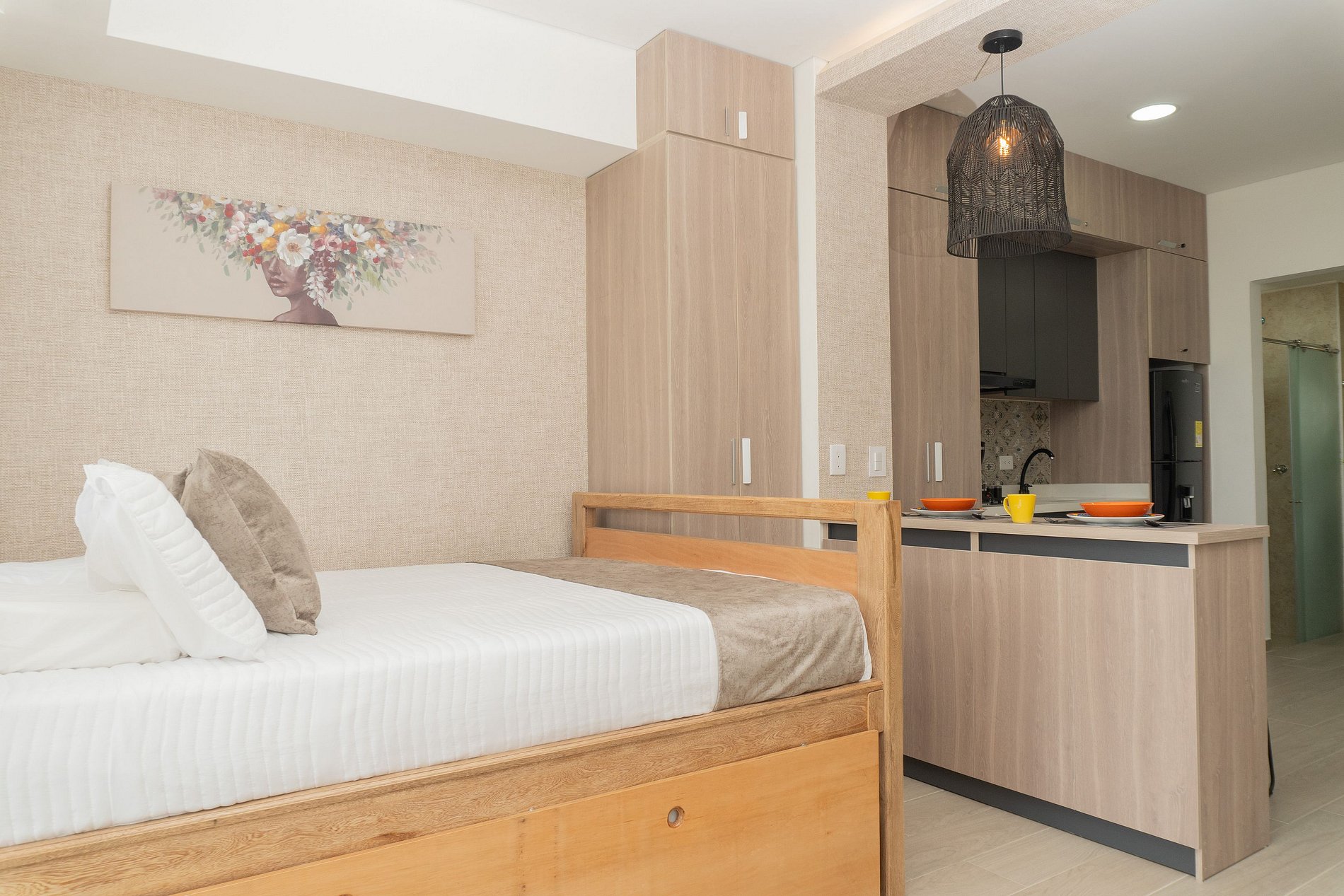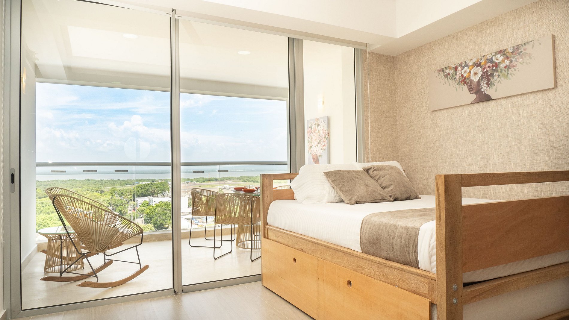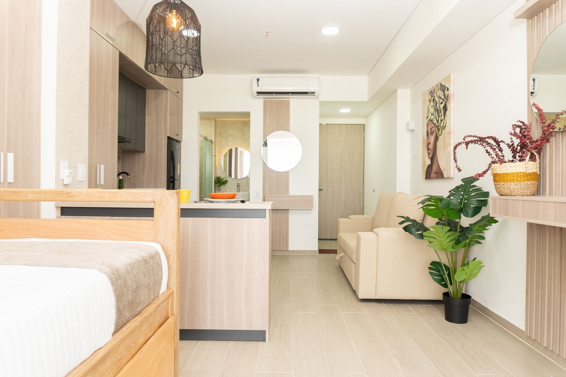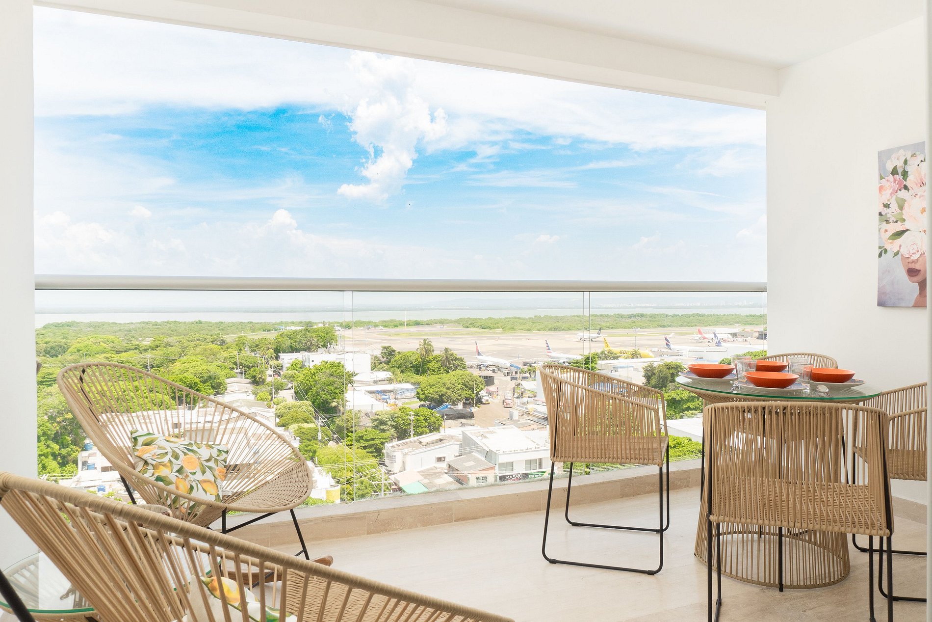 Moderna suite en piso 10 con espectacular vista, ideal para familias o viajes de trabajo. A solo 2 min del aeropuerto, cuenta con 2 camas queen (una deslizable), sofá cama, cocina equipada y balcón con comedor al aire libre. Edificio nuevo con hermosa piscina y zonas comunes. Ubicación estratégica cerca de la playa, restaurantes, supermercados y transporte. Tranquilidad, comodidad y atención cálida garantizadas