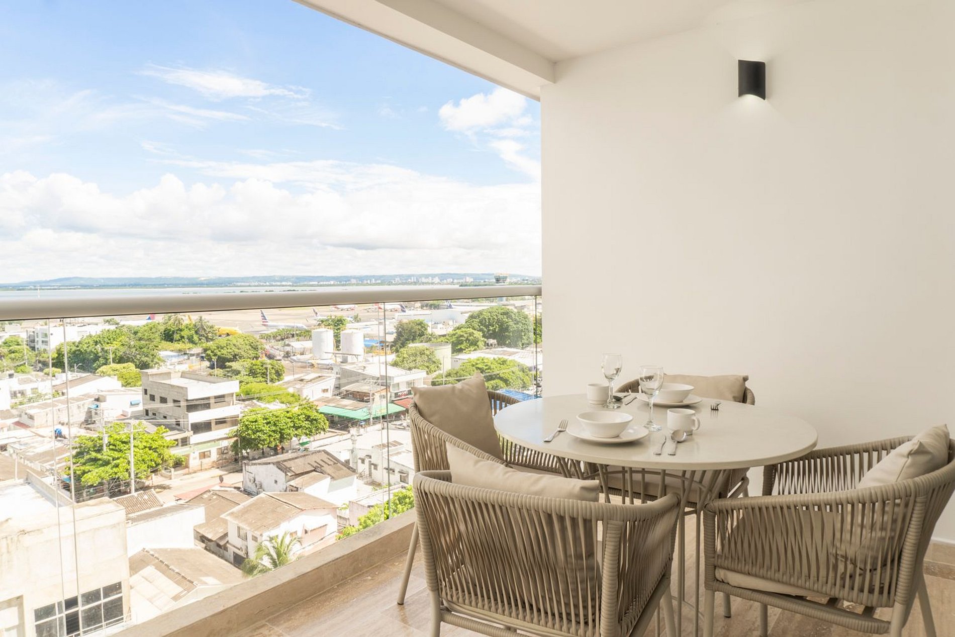 Su estilo moderno, el comedor exterior en el balcón y la vista abierta a la Ciénaga de la Virgen la convierten en una joya escondida en la ciudad. Desde allí, los amaneceres son un espectáculo natural que podrás disfrutar cada mañana.