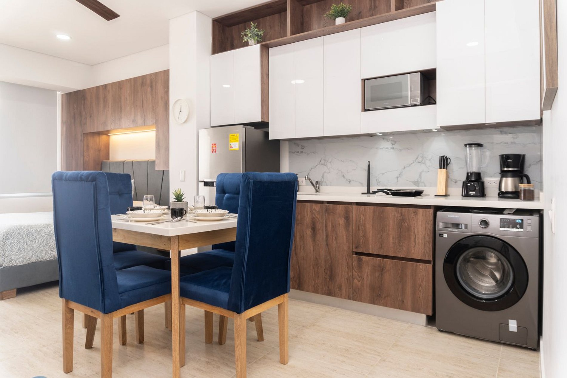 • Lavadora/secadora integrada, muy conveniente para estadías largas.