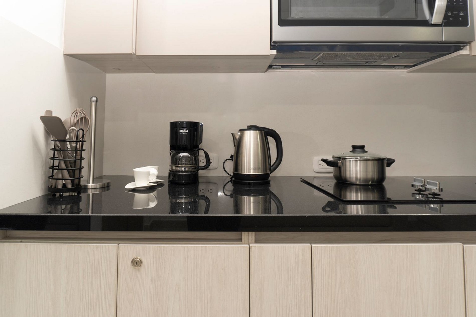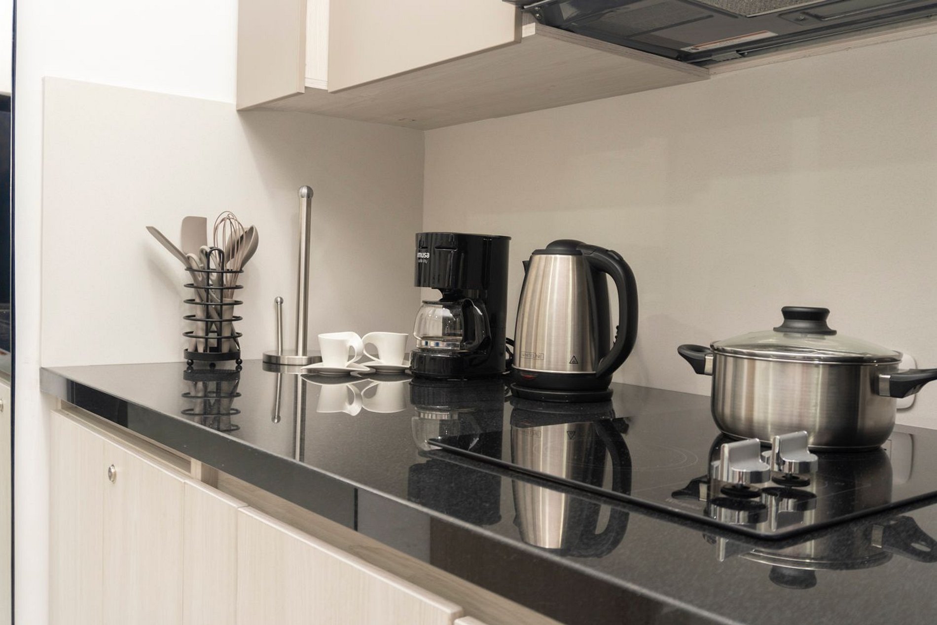 • Cocina equipada: nevera, microondas, cafetera, licuadora, menaje completo y barra-comedor