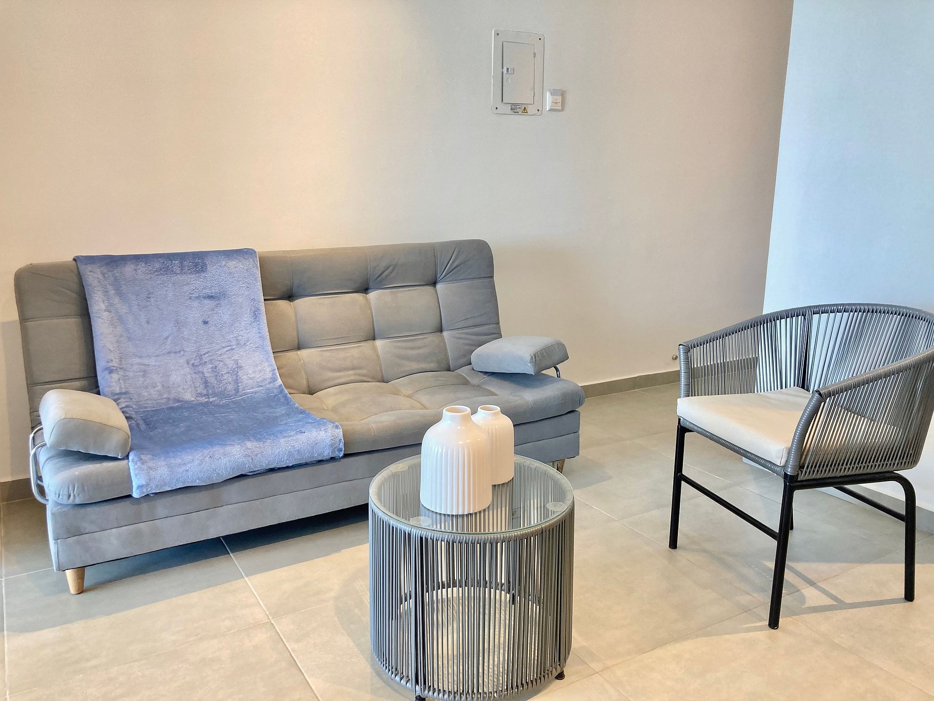 Disfruta este apartamento en el piso 8 de Cartagena Beach con balcón privado y espectaculares vistas al mar y al parque lineal de Crespo. Ideal para hasta 3 huéspedes, cuenta con cama Queen, sofá cama, Smart TV, aire acondicionado y Wi-Fi de alta velocidad. Cocina equipada con nevera, microondas, cafetera y menaje. El edificio ofrece piscina frente al mar, jacuzzi, sauna, turco, gimnasio y seguridad 24h. A solo 3 min del aeropuerto y cerca del centro histórico.