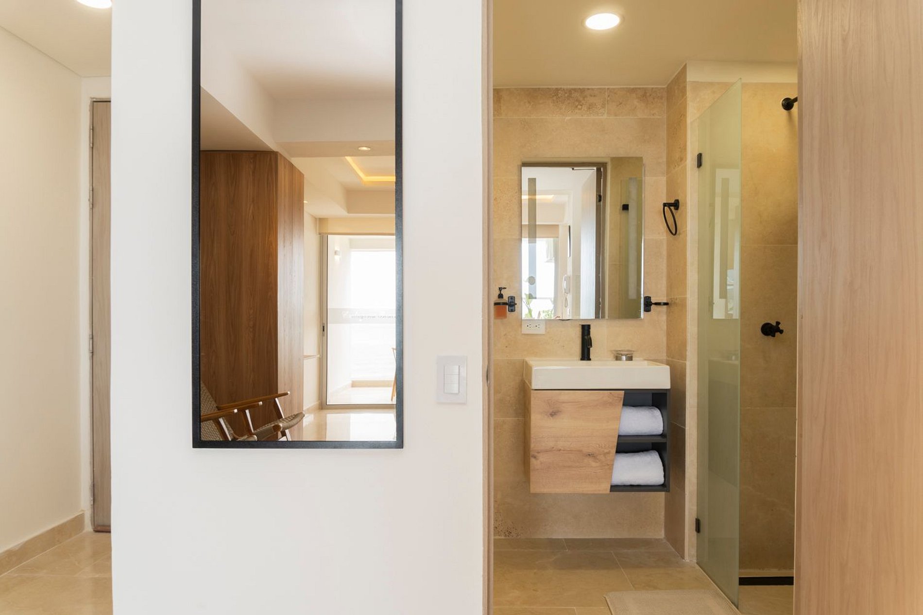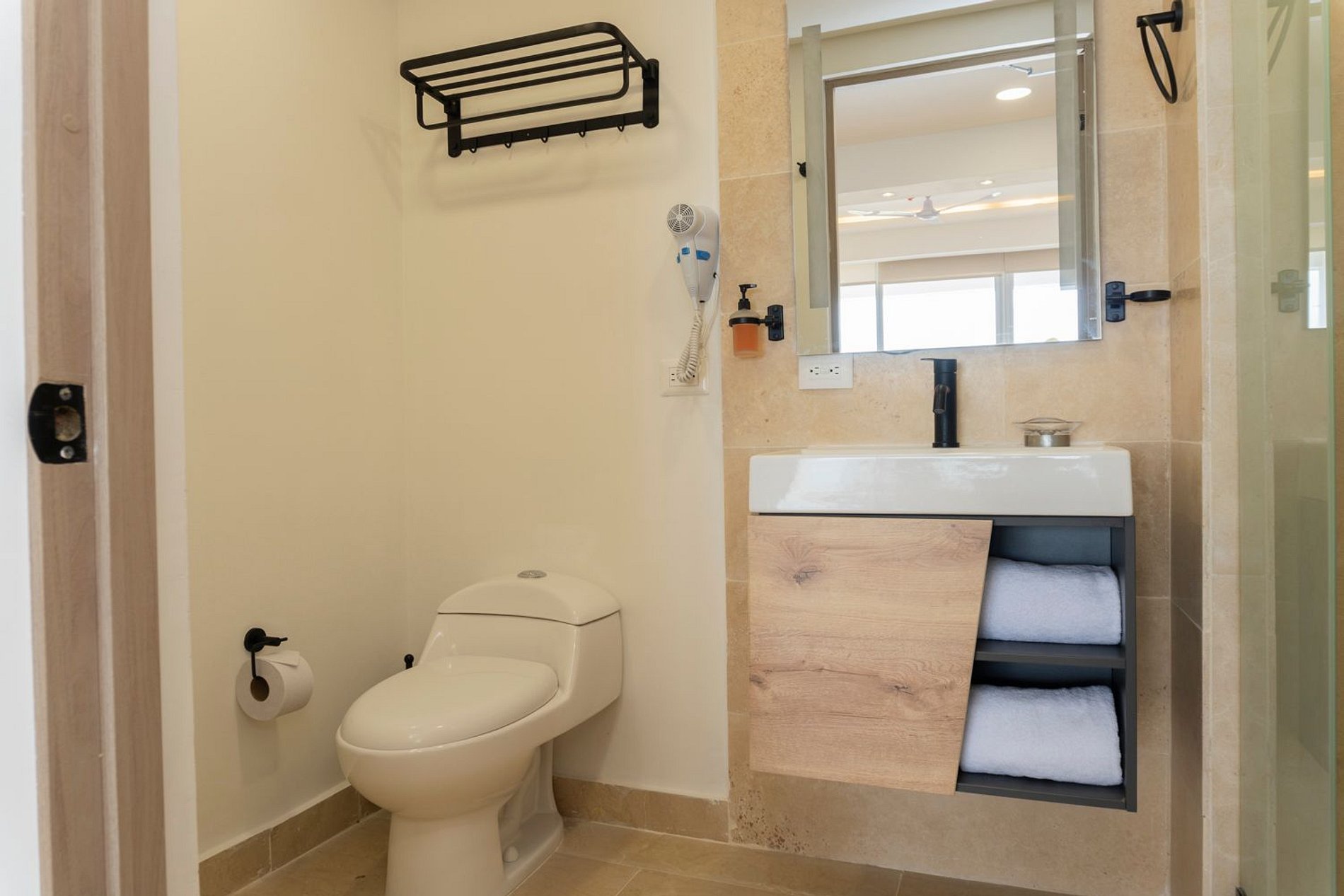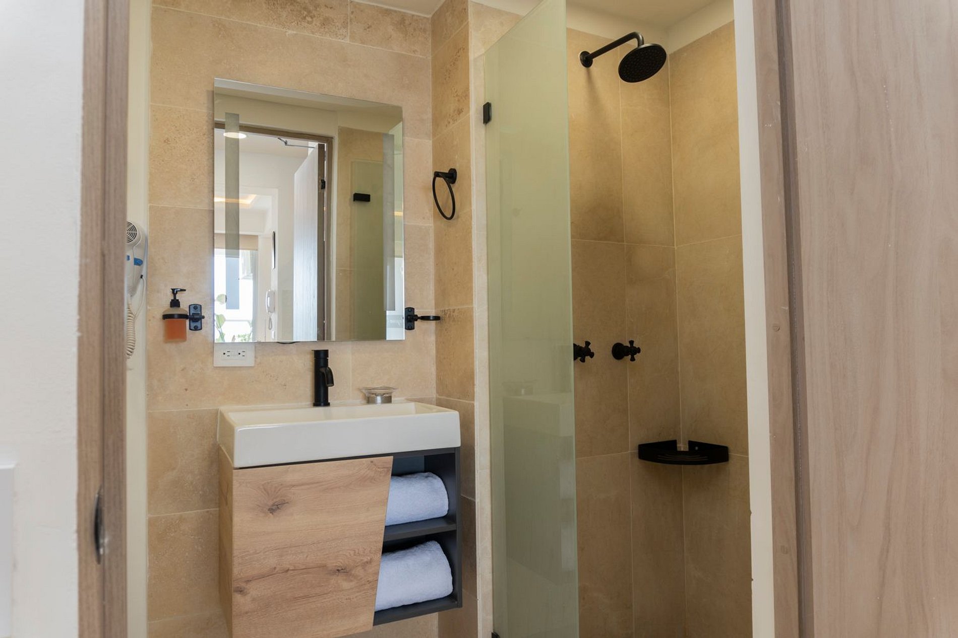 • Baño moderno con ducha amplia y amenities