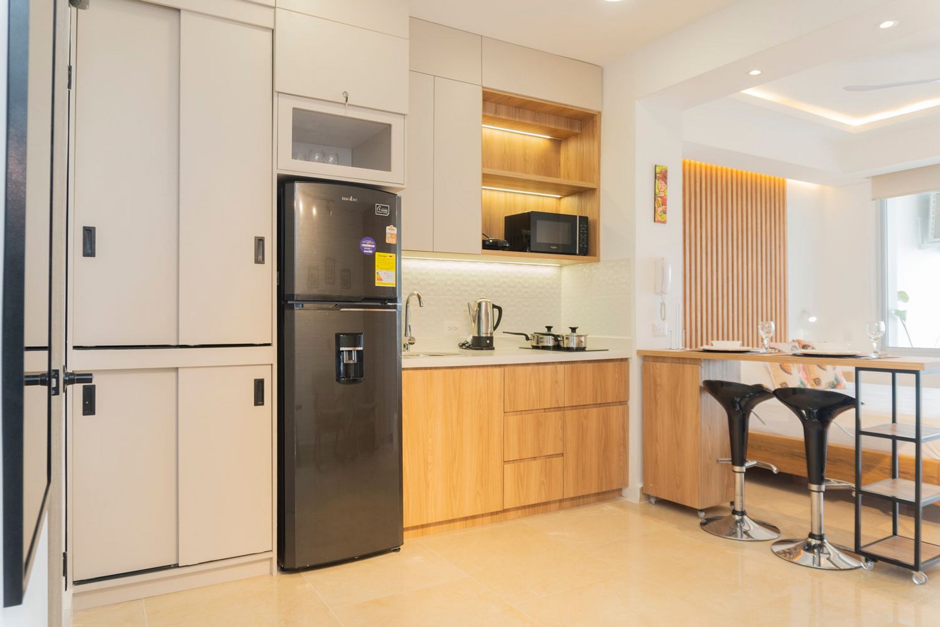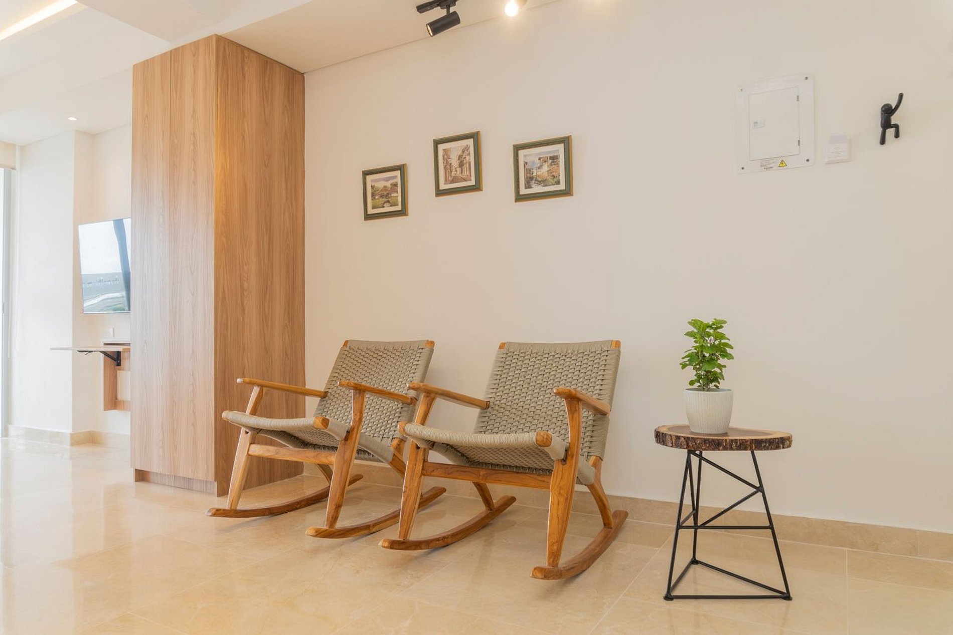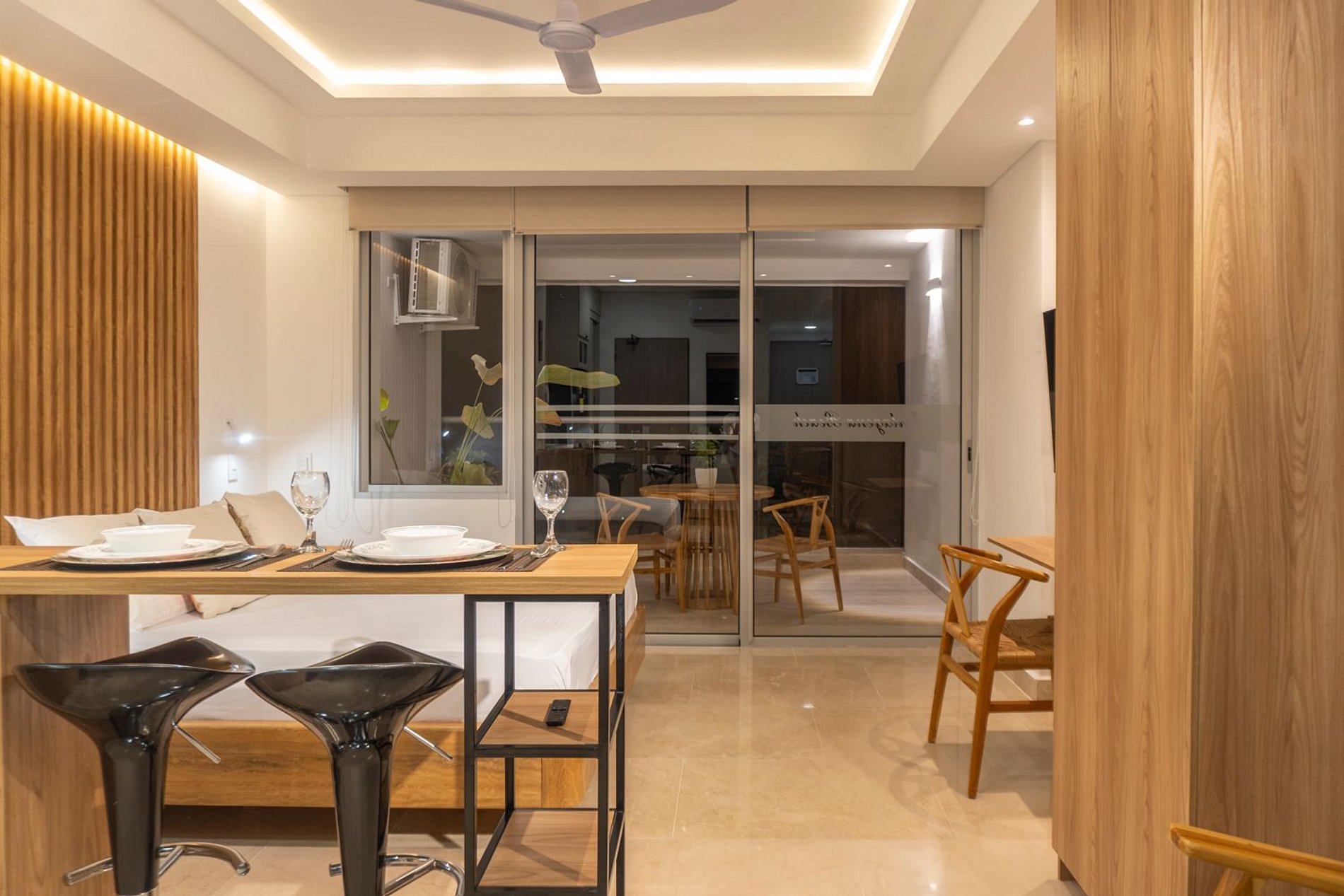 En el piso 9, esta suite boho moderna ofrece un espacio lleno de luz natural, con acabados cálidos en madera y un estilo acogedor. Disfruta de cama Queen con ropa de alta calidad, Smart TV, aire acondicionado y blackout. Cocina equipada con nevera, microondas, cafetera, licuadora, hervidor y menaje completo. Balcón amoblado con mesa y sillas para contemplar el mar. Baño moderno con ducha amplia y amenities. El edificio cuenta con piscina, jacuzzi, sauna, turco y recepción 24/7, frente a la playa