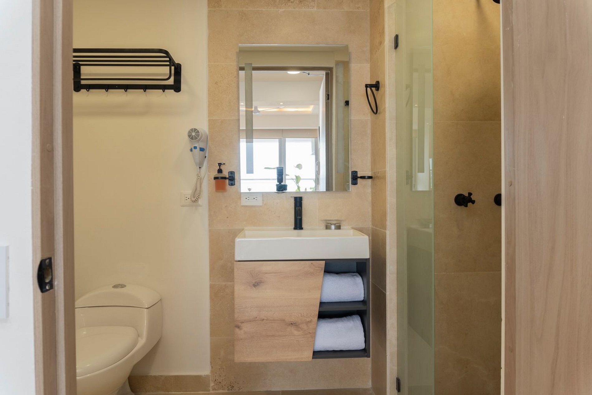 • Baño moderno con ducha amplia y amenities