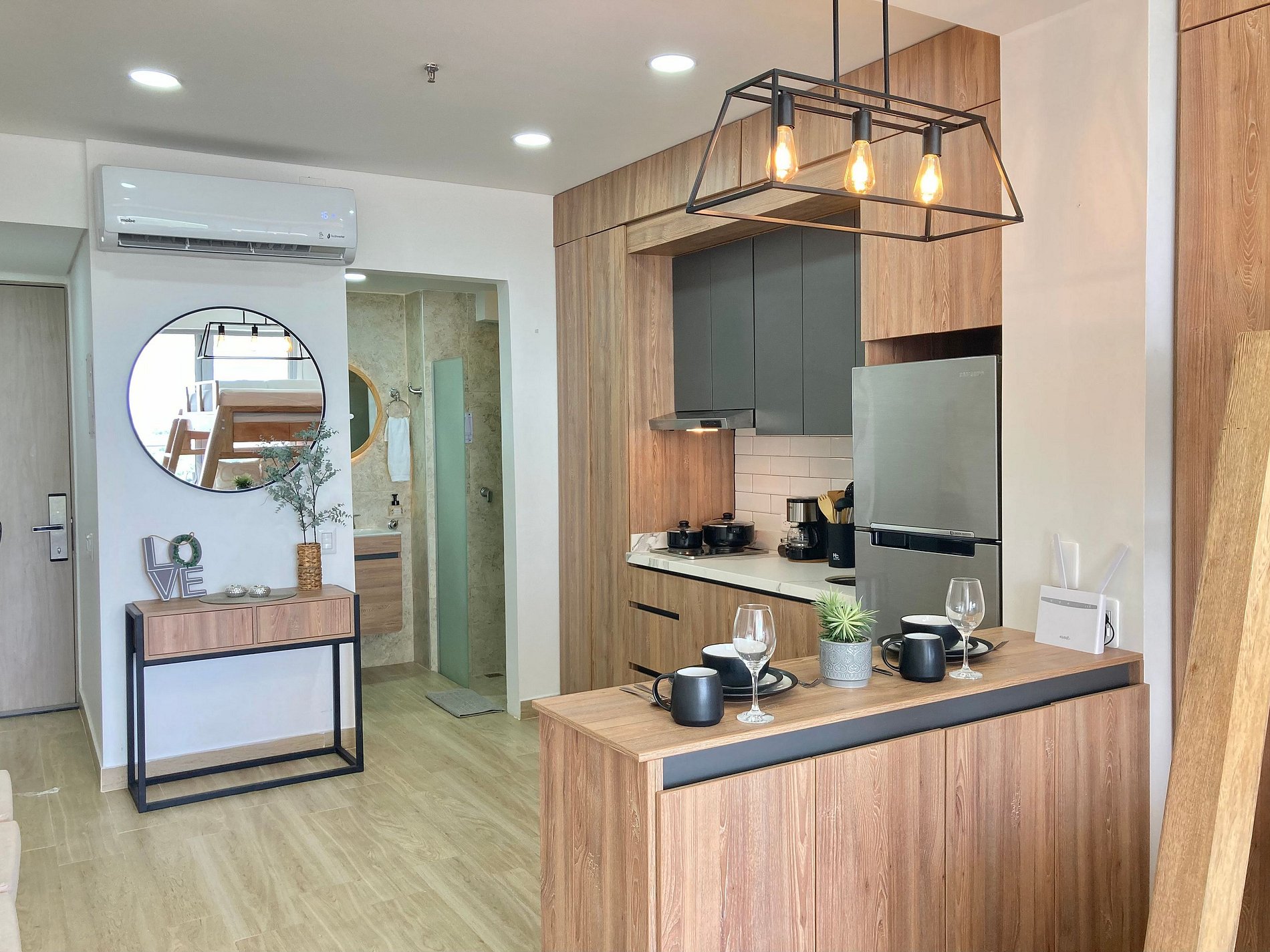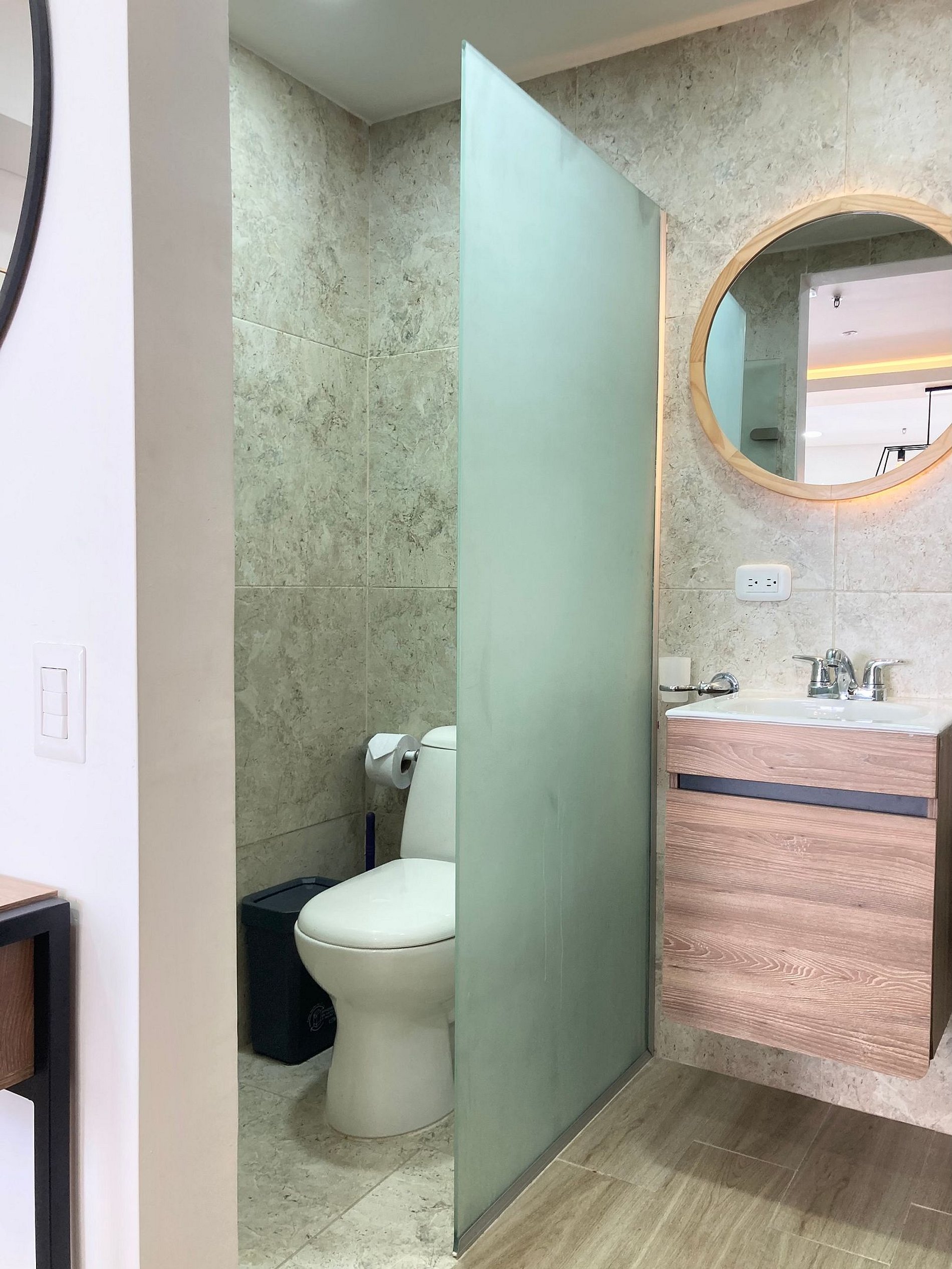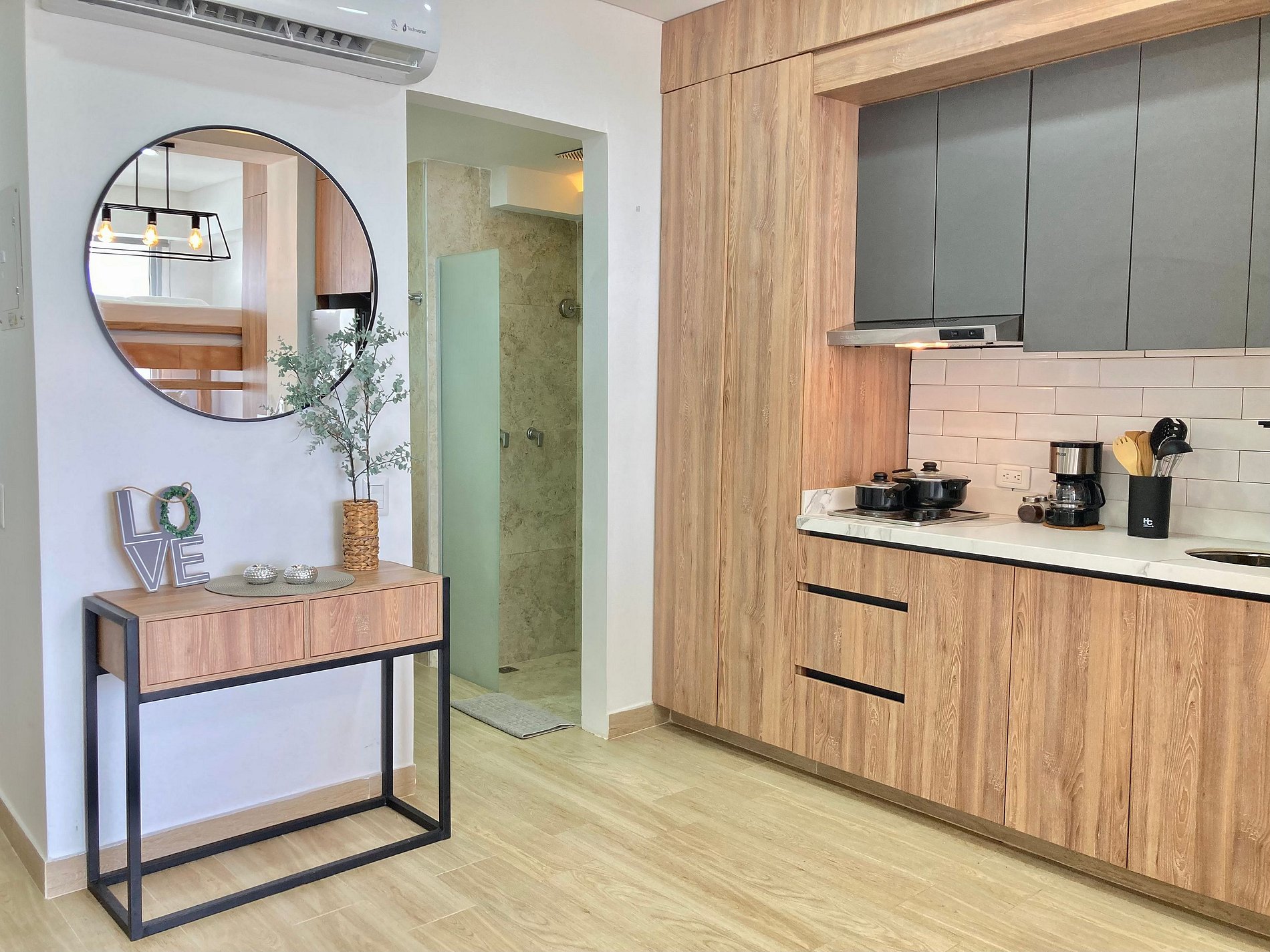 • Ambiente luminoso y moderno, con acabados en madera y tonos neutros que generan calidez.