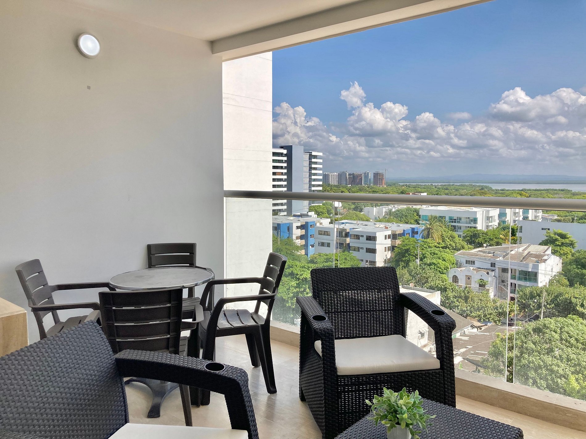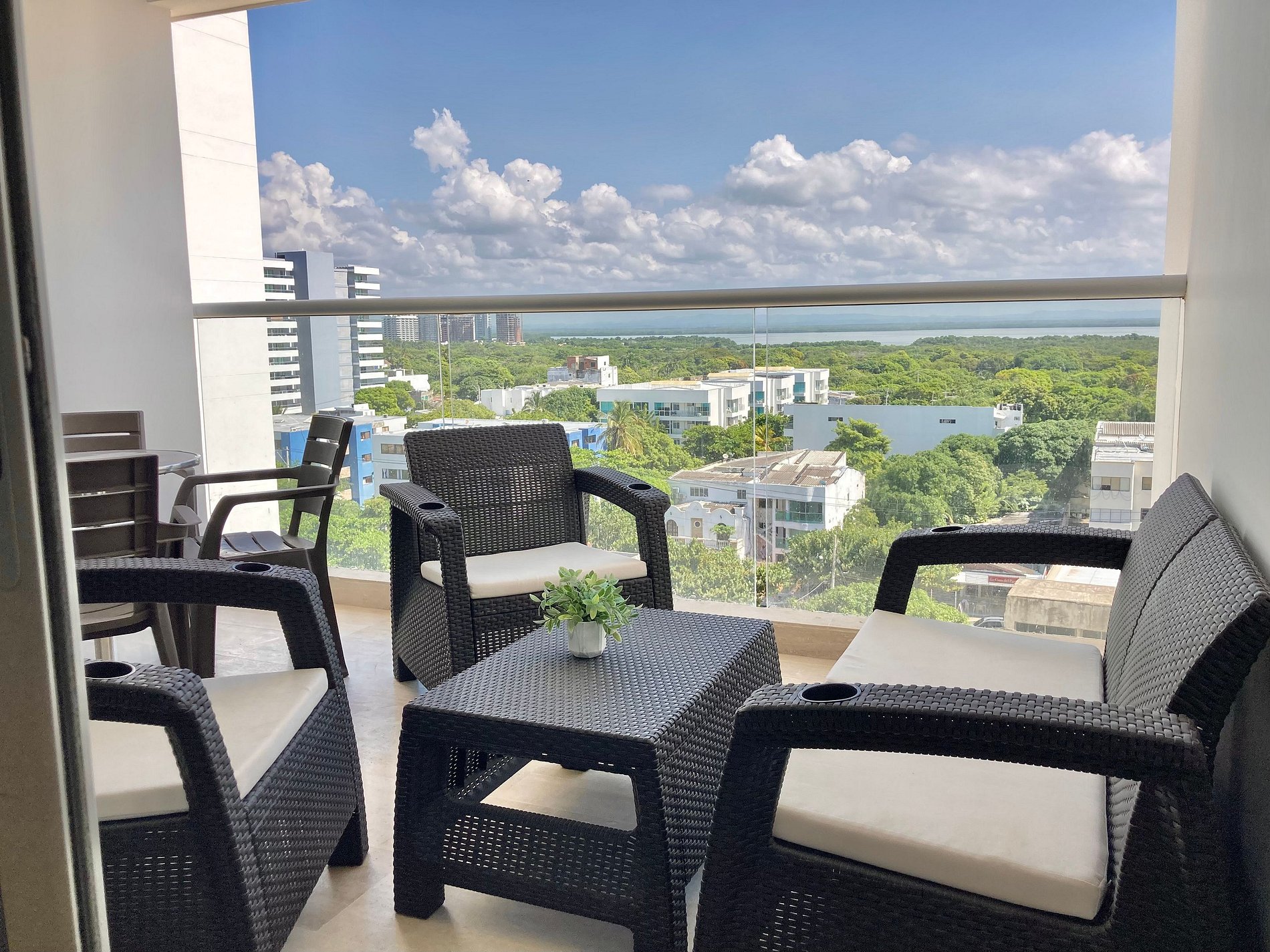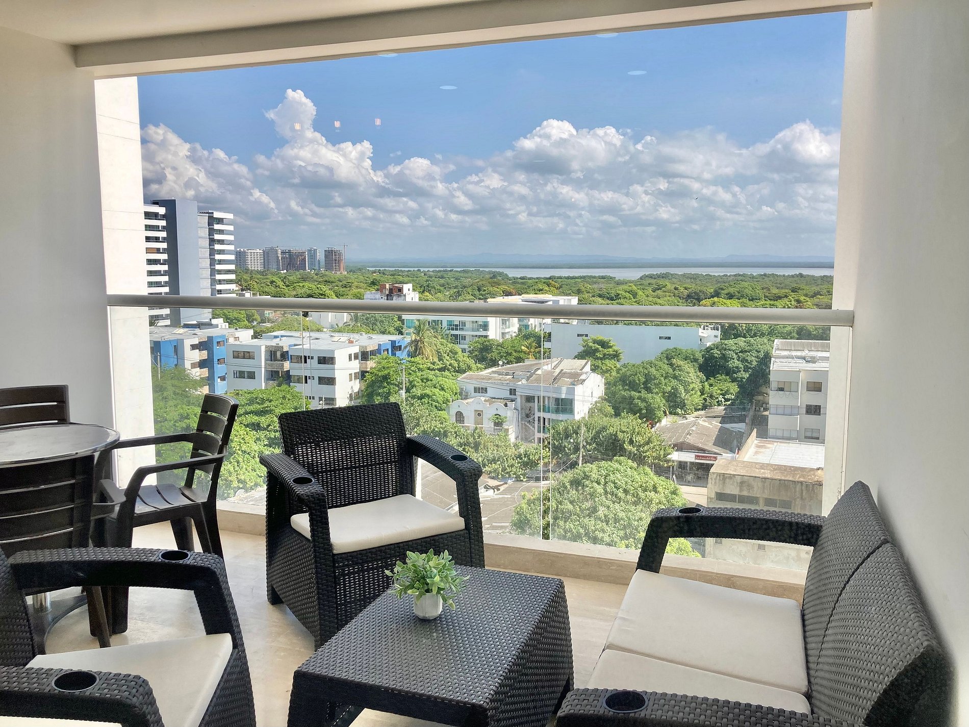 • Balcón XL amoblado con vistas variadas: Ciénaga, ciudad, aeropuerto y parcial al mar.