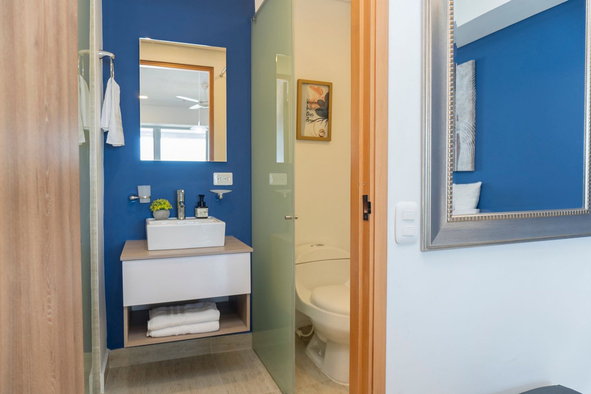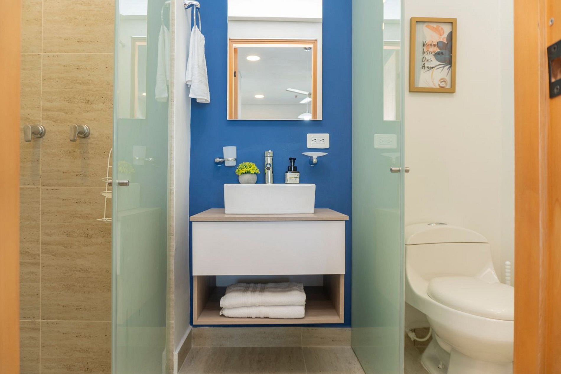 • Baño moderno con ducha walk-in en vidrio y acabados de diseño