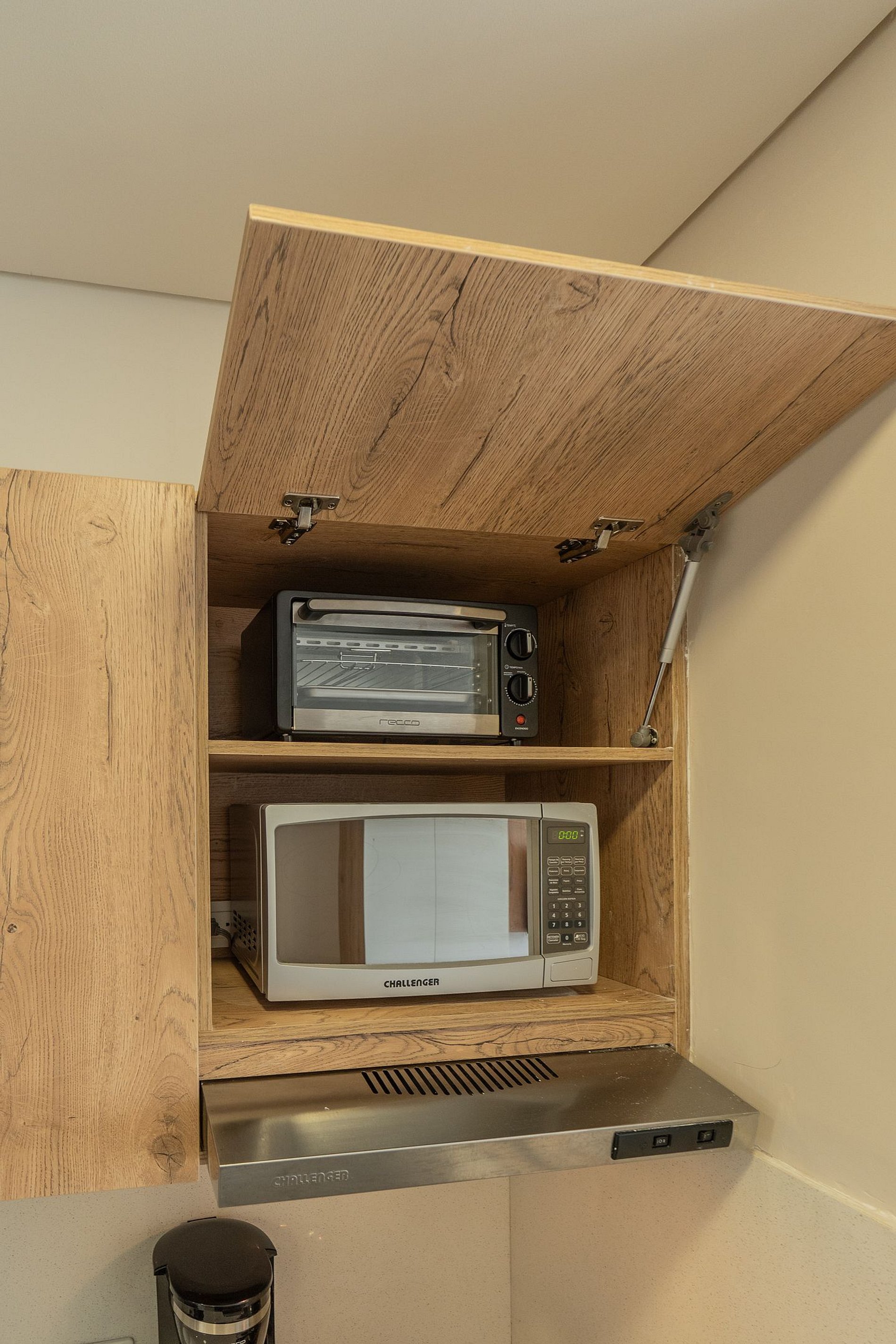 • Cocina equipada con nevera grande, estufa, microondas, cafetera, licuadora, sandwichera y menaje completo