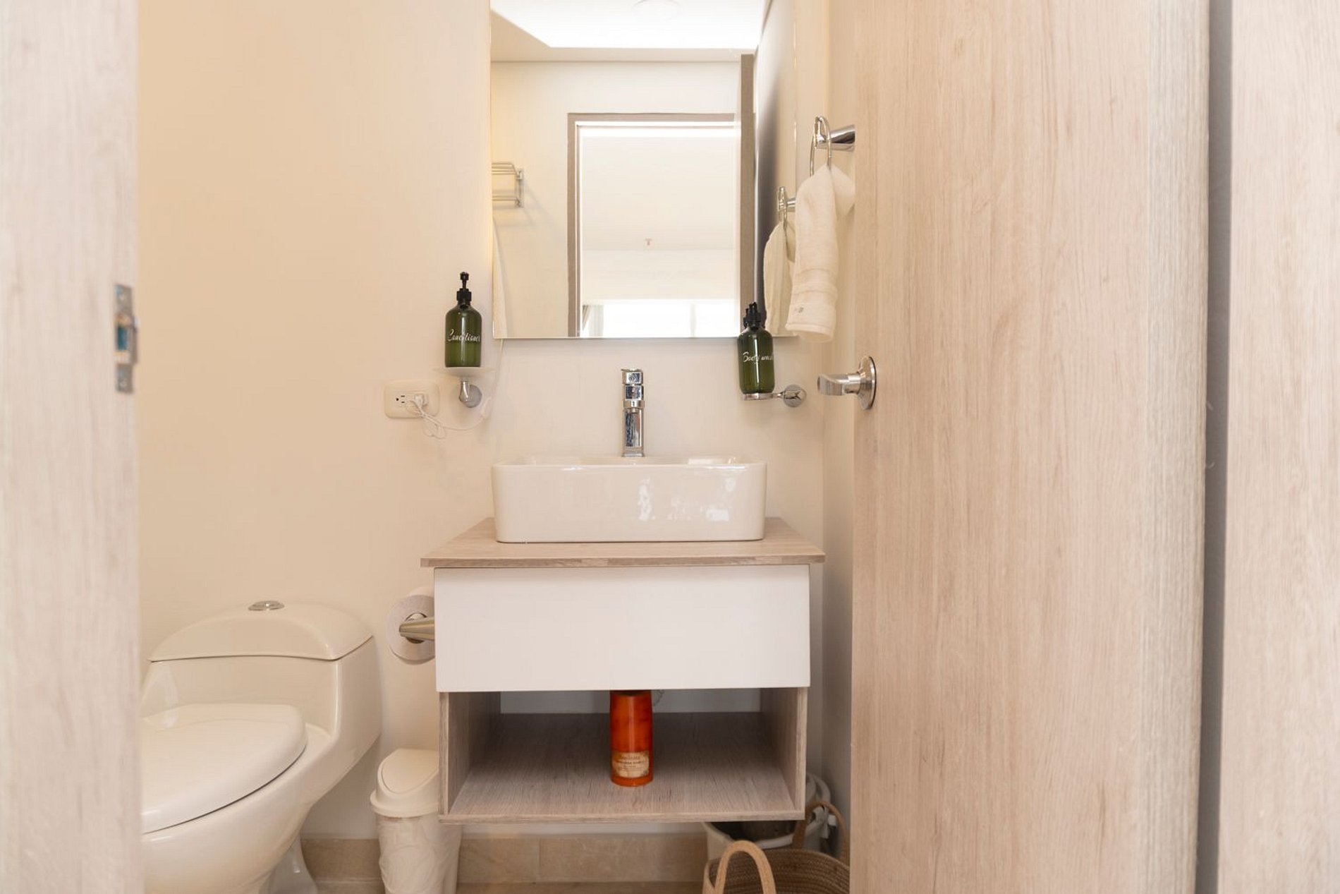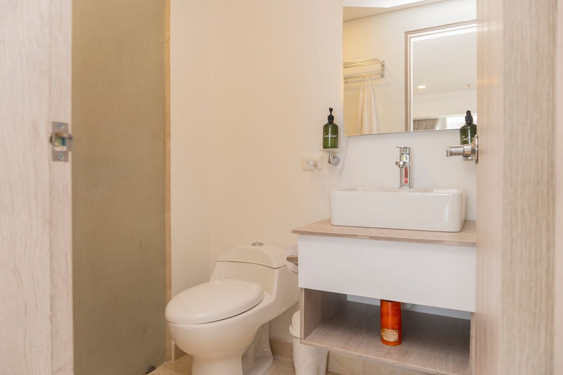 Ubicado en el exclusivo edificio Cartagena Beach, uno de los más nuevos y completos del barrio Crespo, este apartamento te brinda acceso a excelentes zonas comunes y una ubicación estratégica en Cartagena. A solo 3 minutos del aeropuerto y con acceso directo a la playa, es perfecto para quienes buscan comodidad y buena conexión.