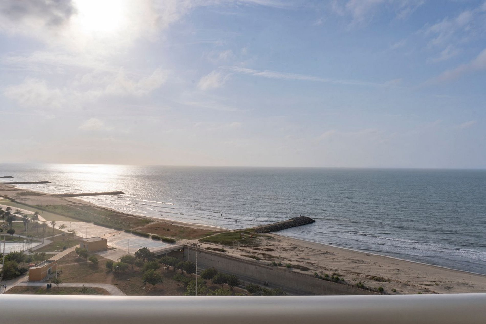 Moderno apartamento familiar frente al mar con balcón panorámico. Dispone de cama doble, sofá cama, cocina equipada, comedor tipo barra y baño contemporáneo. Cuenta con Smart TV, aire acondicionado, internet ultra rápido y espacio de trabajo. Incluye juegos de mesa, ideal para familias que buscan comodidad y diversión en un ambiente costero.