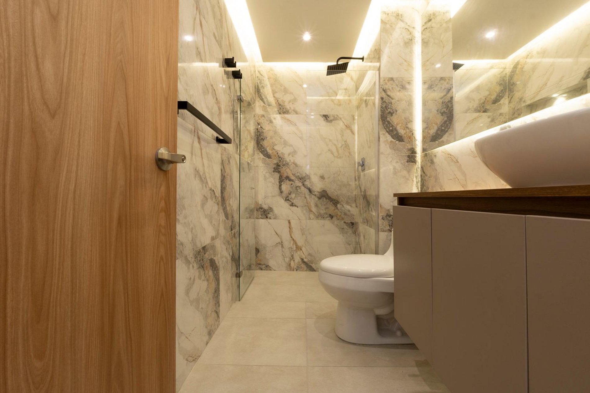 • Baño de lujo con acabados en mármol, ducha tipo spa y amenities de cortesía.
