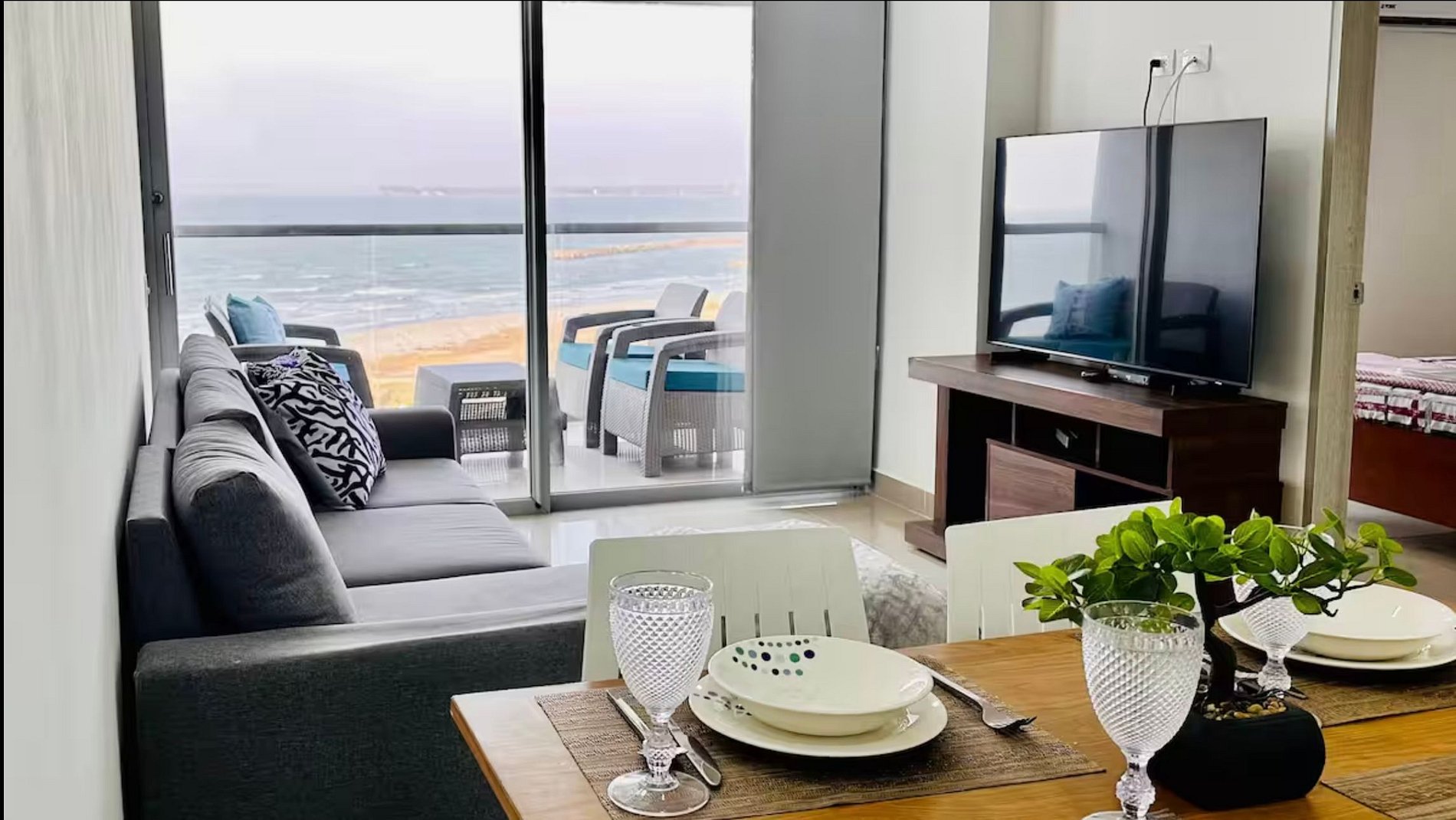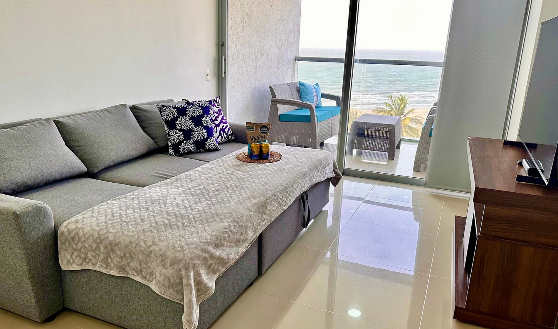 Acogedor apartamento en el piso 8 del exclusivo Edificio Ocean drive de Crespo, dotado con todo lo que necesitas para tu estadía en Cartagena. Ubicado en Zona norte de la ciudad. El apartamento cuenta con la mejor Vista al Mar y al Aeropuerto Rafael Nuñez desde su balcón. A 10 minutos del Centro Histórico de Cartagena. Próximo a Playa Azul certificada con galardón Blue Flag