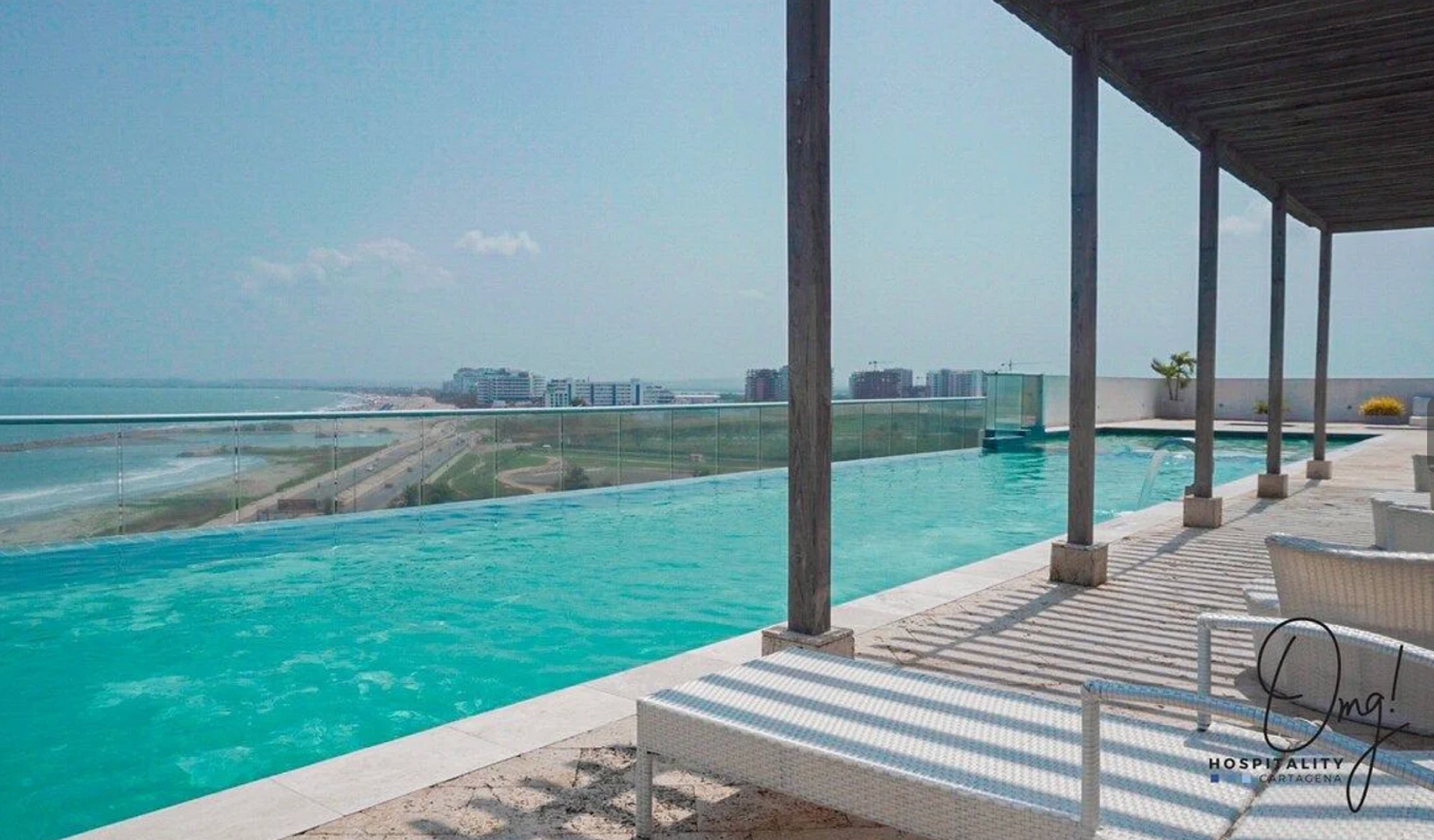 El Edificio Ocean Drive cuenta con salas lounge en la recepcion del edificio y una gran terraza en el ultimo piso, con hermosa vista al Mar y atardeceres inolvidables! Piscina familiar con vista a la playa y a la zona norte de Cartagena dos jacuzzis familiares y mobiliario exterior, una Piscina para niños y Asoleadoras, baño turco y sauna, el edificio también cuenta con gimnasio dotado en el piso 2 del edificio.