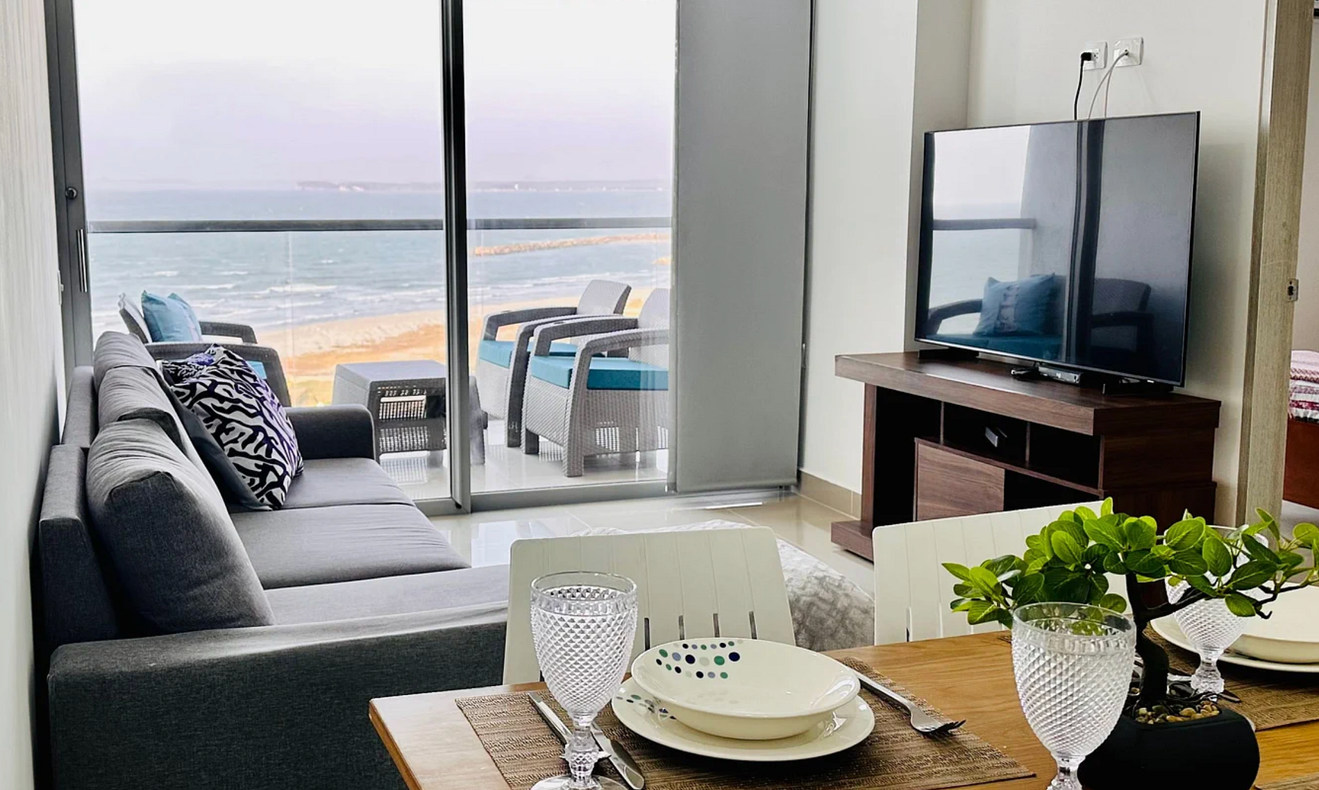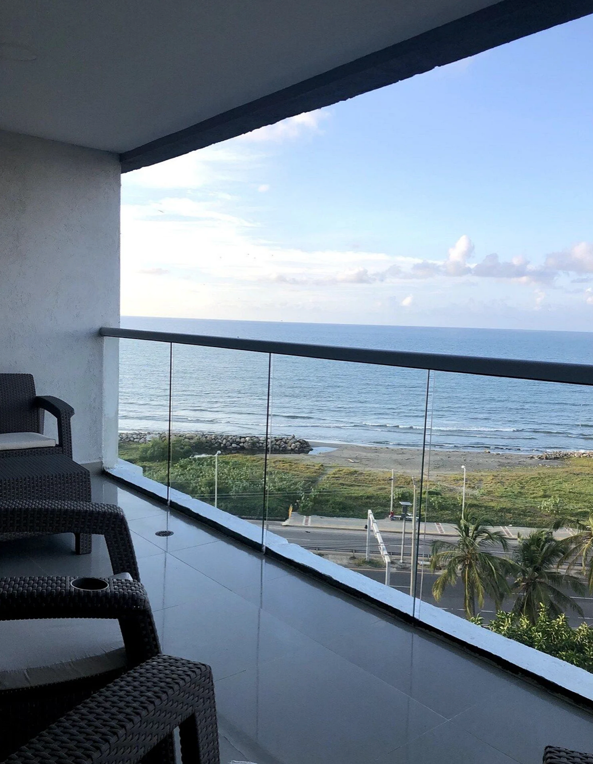 Acogedor apartamento en el piso 8 del exclusivo Edificio Ocean drive de Crespo, dotado con todo lo que necesitas para tu estadía en Cartagena. Ubicado en Zona norte de la ciudad. El apartamento cuenta con la mejor Vista al Mar y al Aeropuerto Rafael Nuñez desde su balcón. A 10 minutos del Centro Histórico de Cartagena. Próximo a Playa Azul certificada con galardón Blue Flag