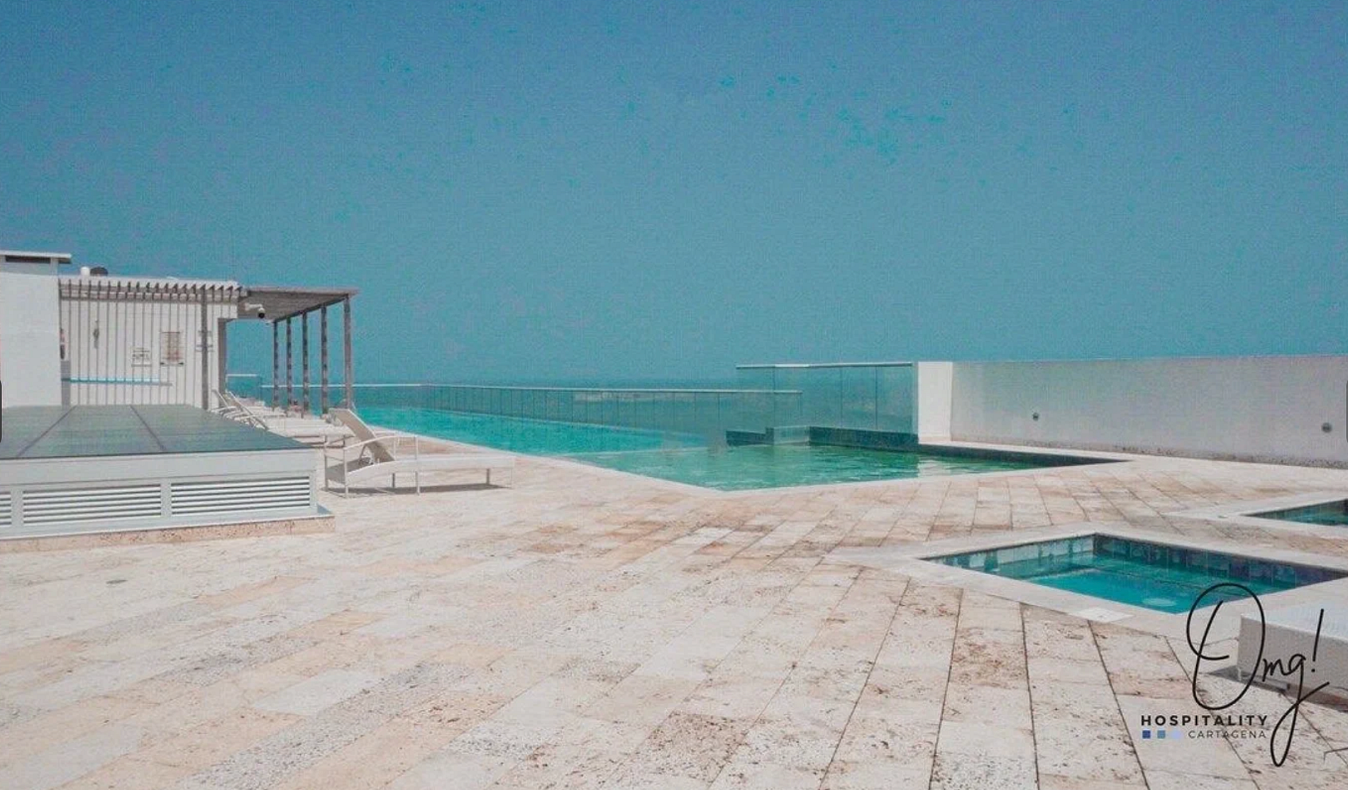 El Edificio Ocean Drive cuenta con salas lounge en la recepcion del edificio y una gran terraza en el ultimo piso, con hermosa vista al Mar y atardeceres inolvidables! Piscina familiar con vista a la playa y a la zona norte de Cartagena dos jacuzzis familiares y mobiliario exterior, una Piscina para niños y Asoleadoras, baño turco y sauna, el edificio también cuenta con gimnasio dotado en el piso 2 del edificio.