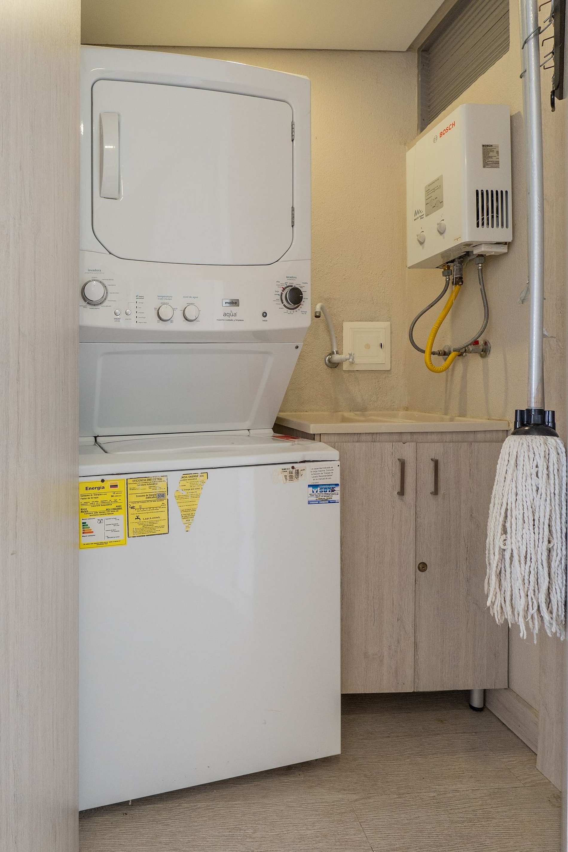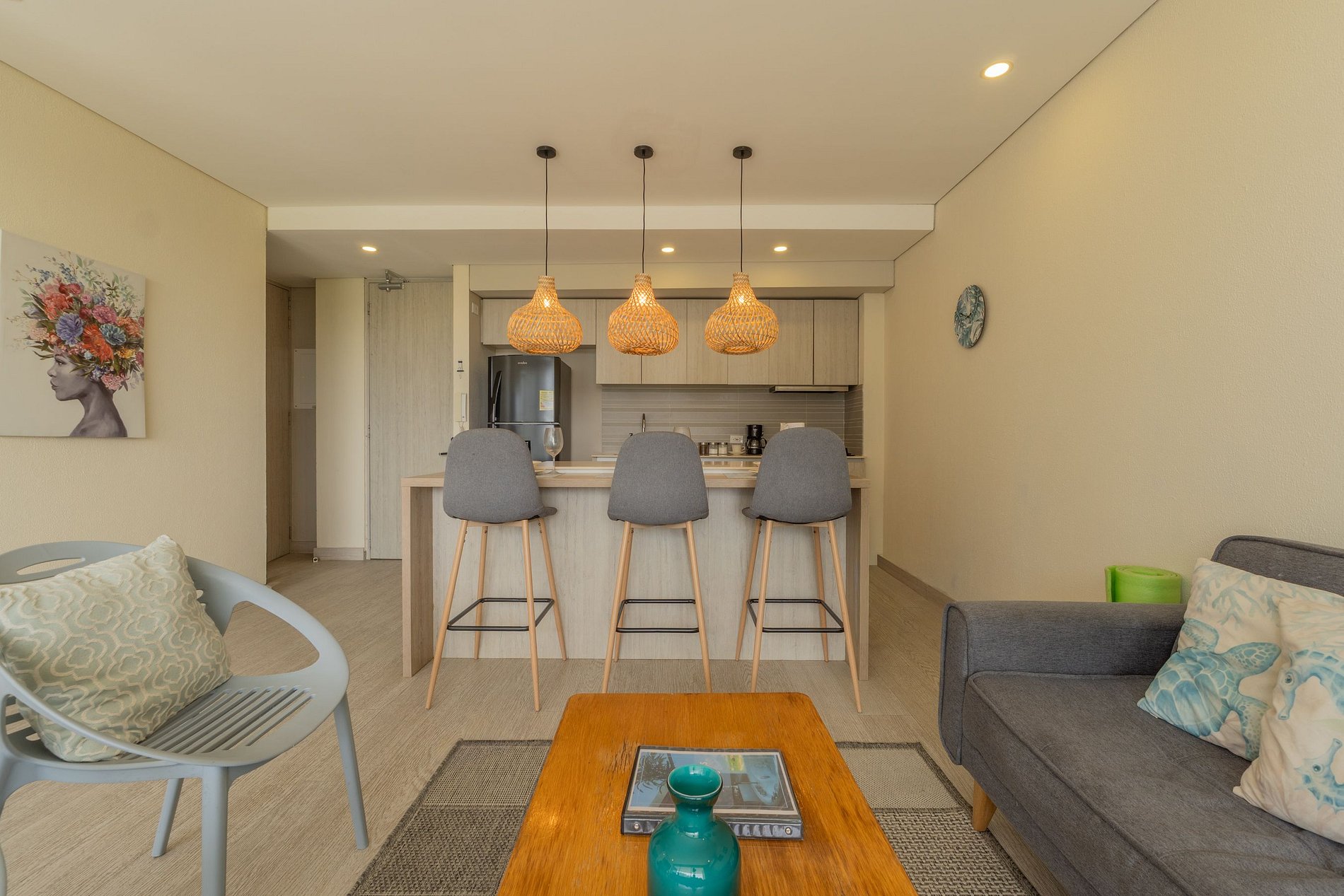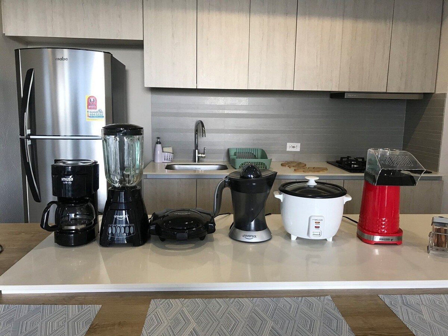 • Cocina totalmente equipada: nevera, estufa a gas, microondas empotrado, crispetera, airfryer, horno tostador, cafetera, licuadora, sandwichera/parrilla, olla arrocera, olla para chocolate, escurridor, vajilla completa y copas