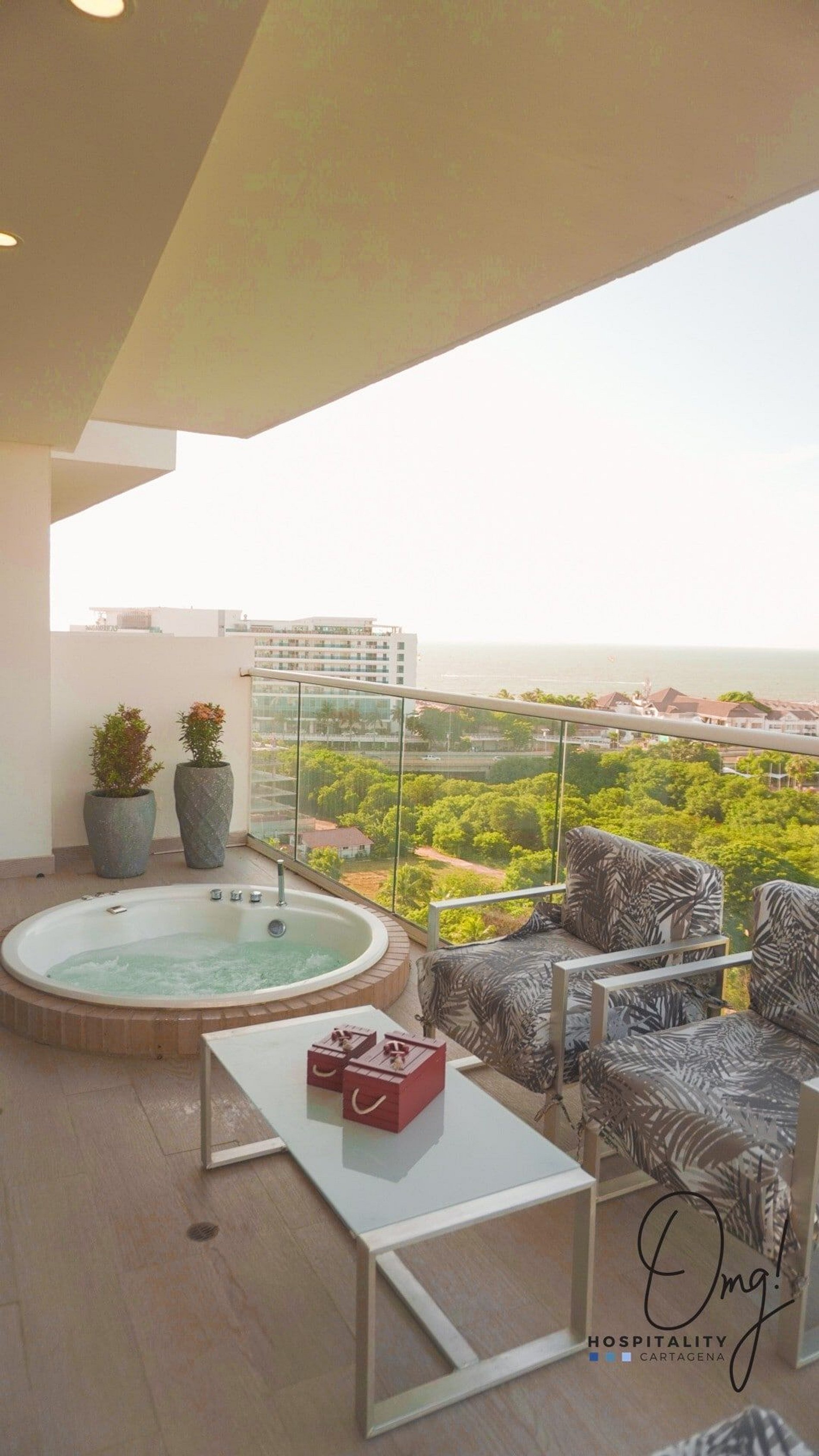 • Jacuzzi privado en el balcón, ideal para momentos de descanso y disfrute