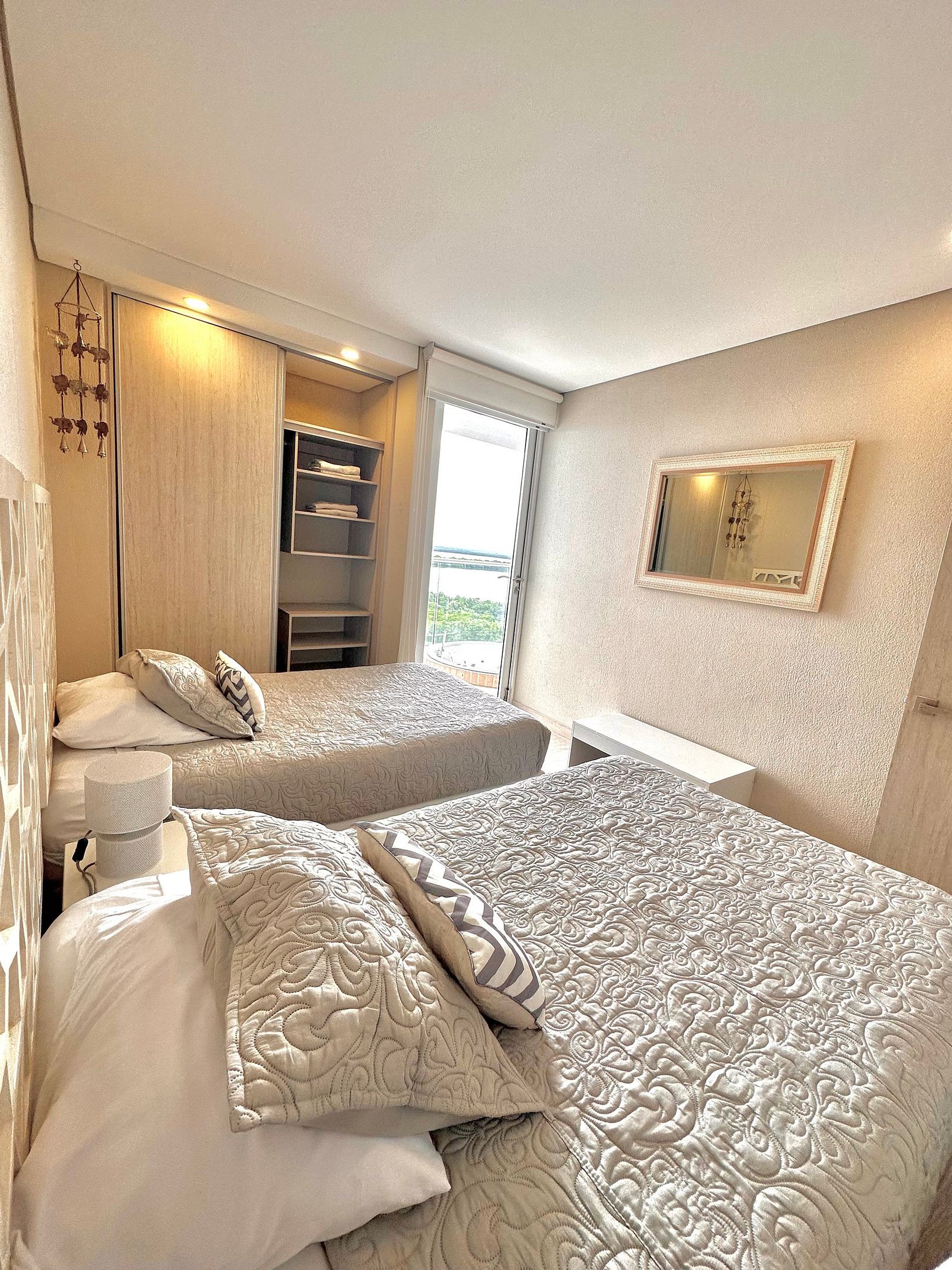 El apto es tal cual se ve muy amplio las camas son muy cómodas muy limpio la playa queda a un par de cuadras la comunicación con Xime es muy rápida y siempre está dispuesta ayudar y resolver cualquier inconveniente o pregunta.. recomiendo el hospedaje tiene una vista a la ciénega muy bonita la piscina del conjunto también es muy bonita y personal muy amable