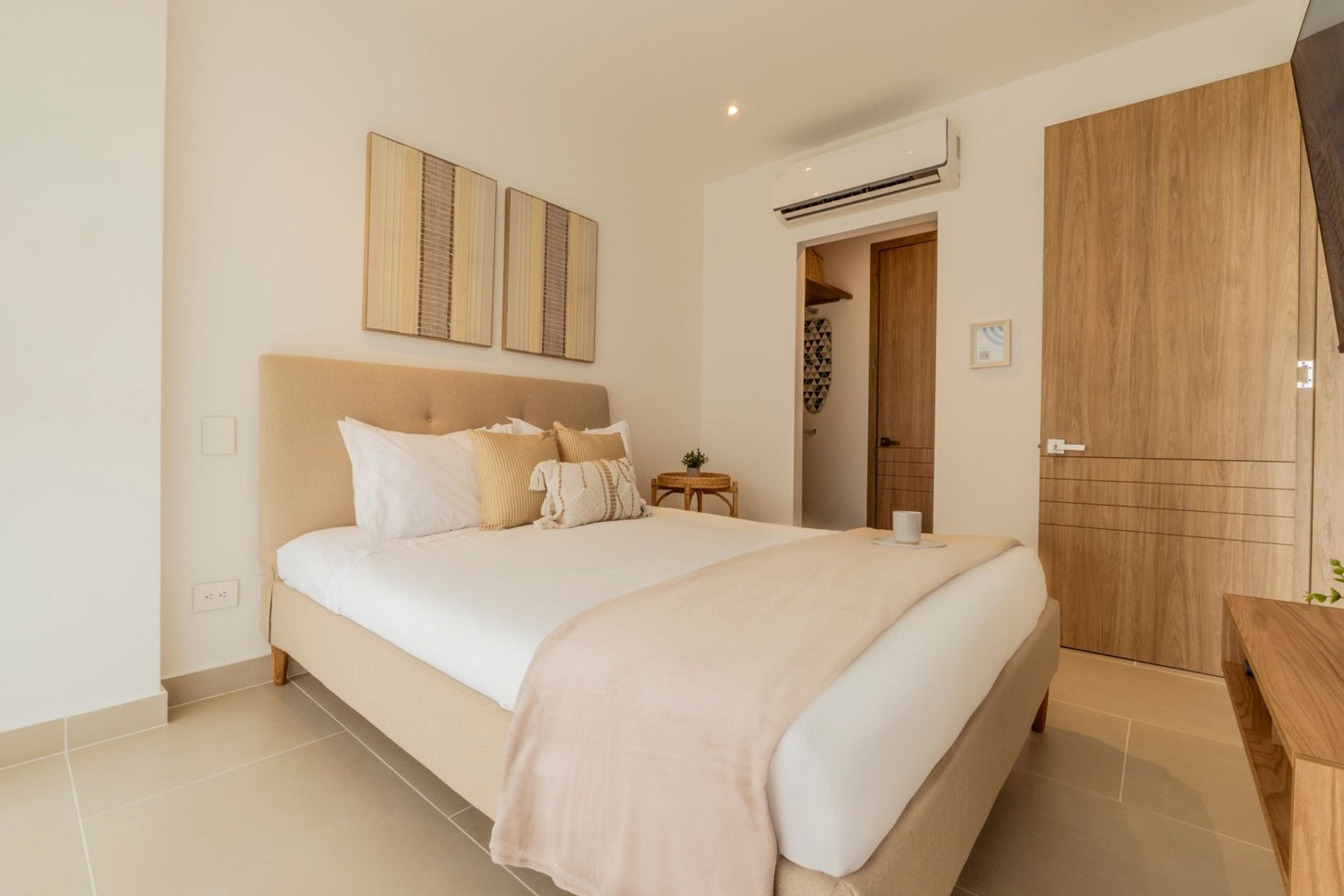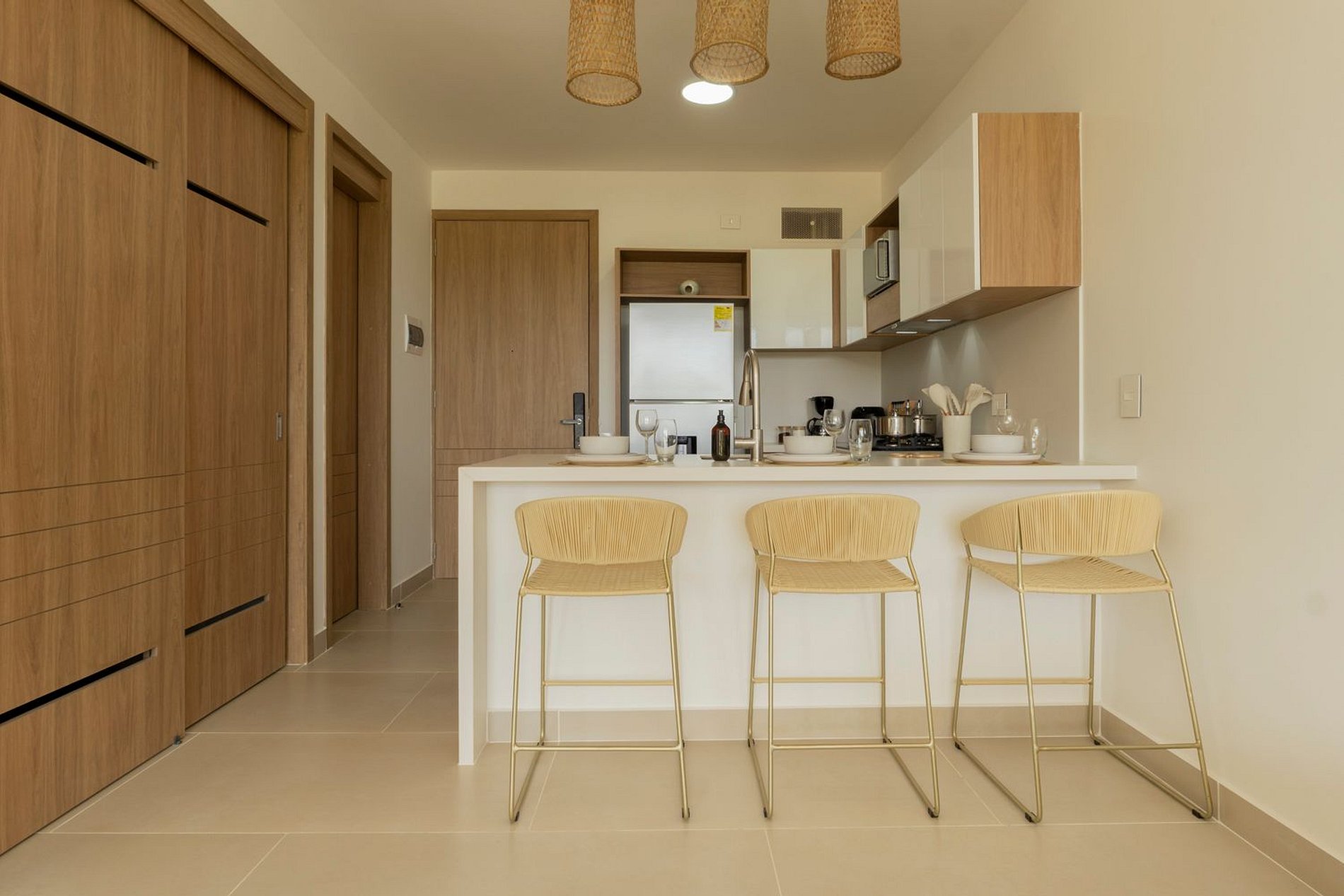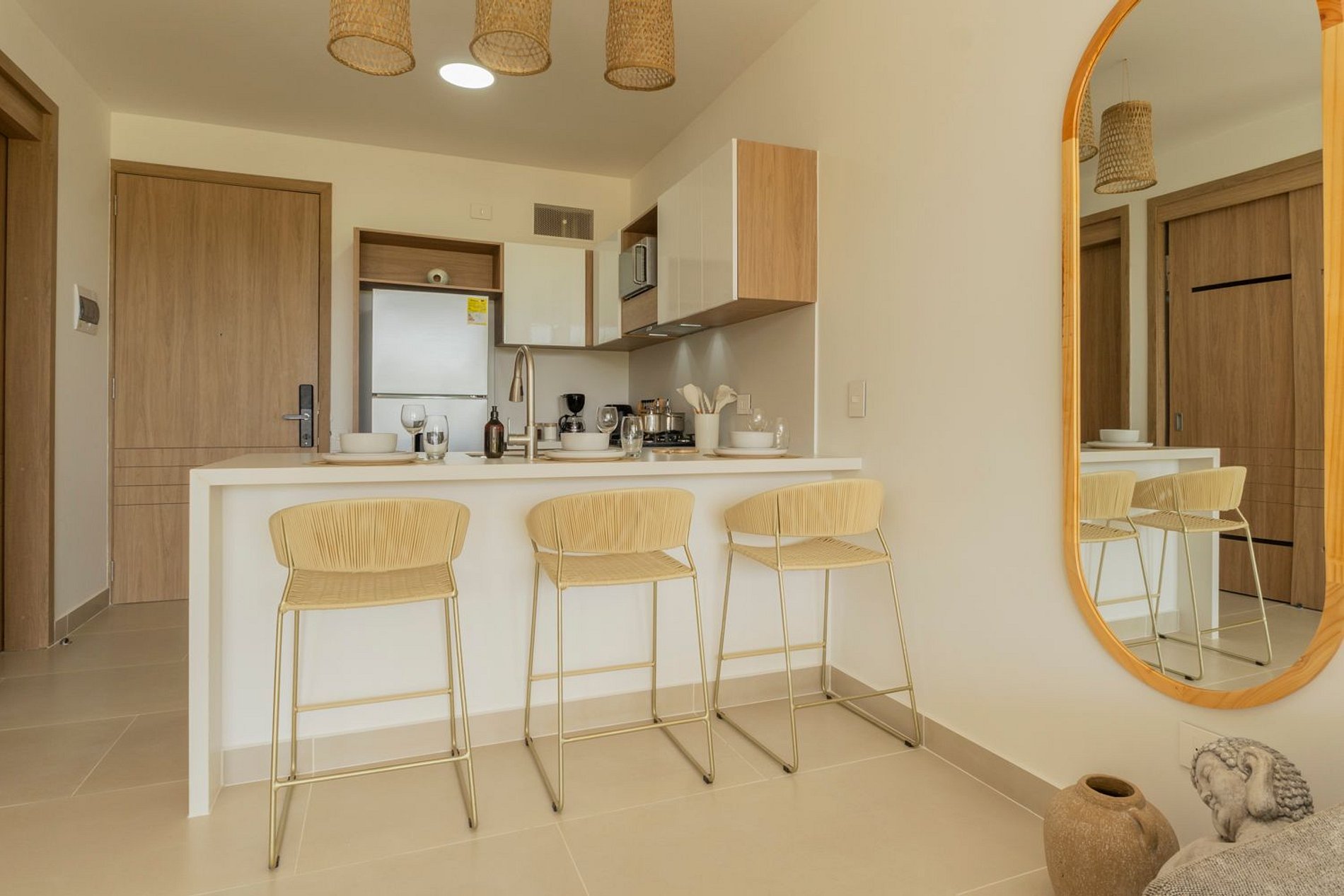 • Baño moderno con ducha tipo lluvia • Acceso a la Crystal Lagoon con arena blanca, jacuzzis, gimnasio y zonas verdes