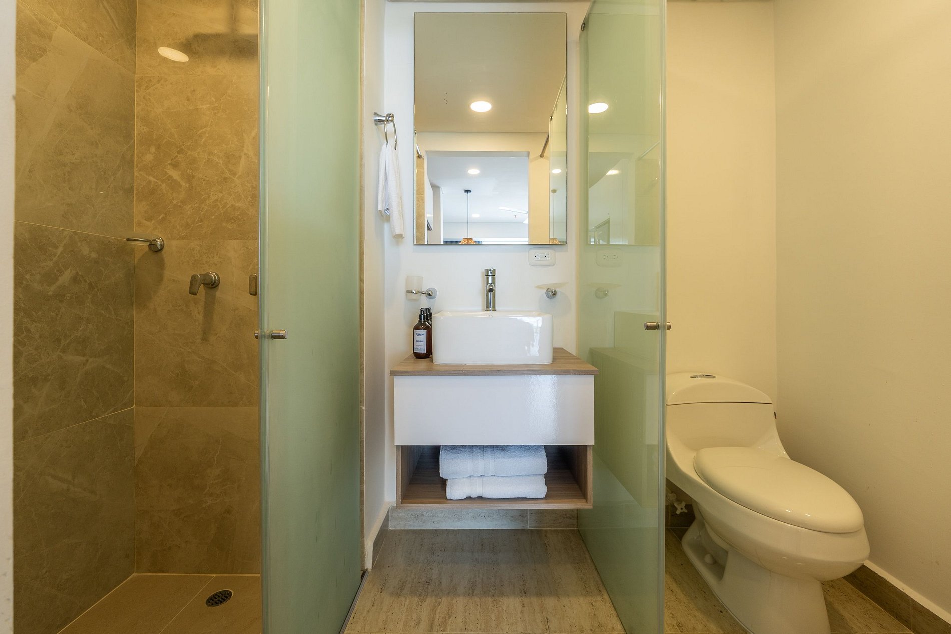 • Baño con ducha tipo lluvia y acabados elegantes