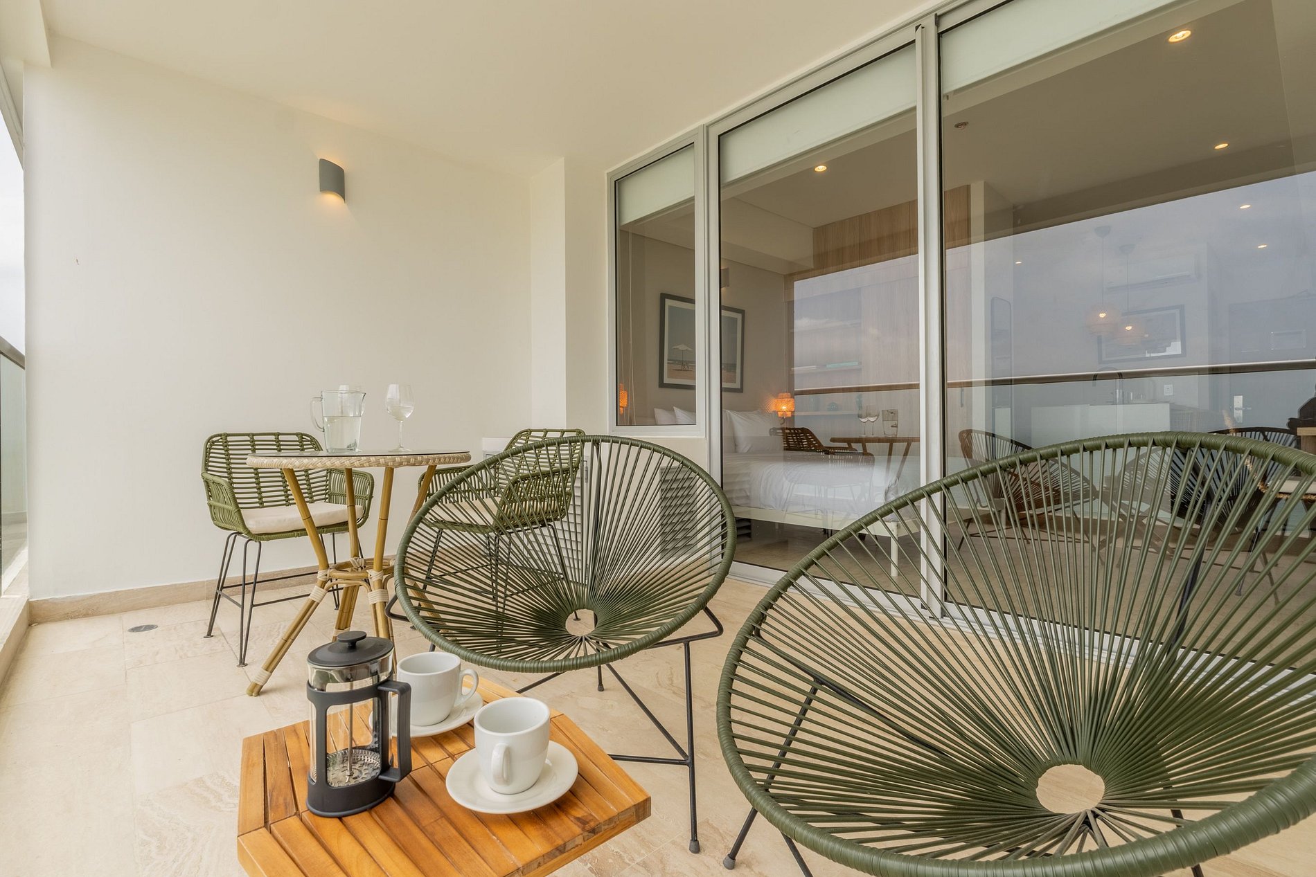 • Balcón privado amoblado con sillas y mesa