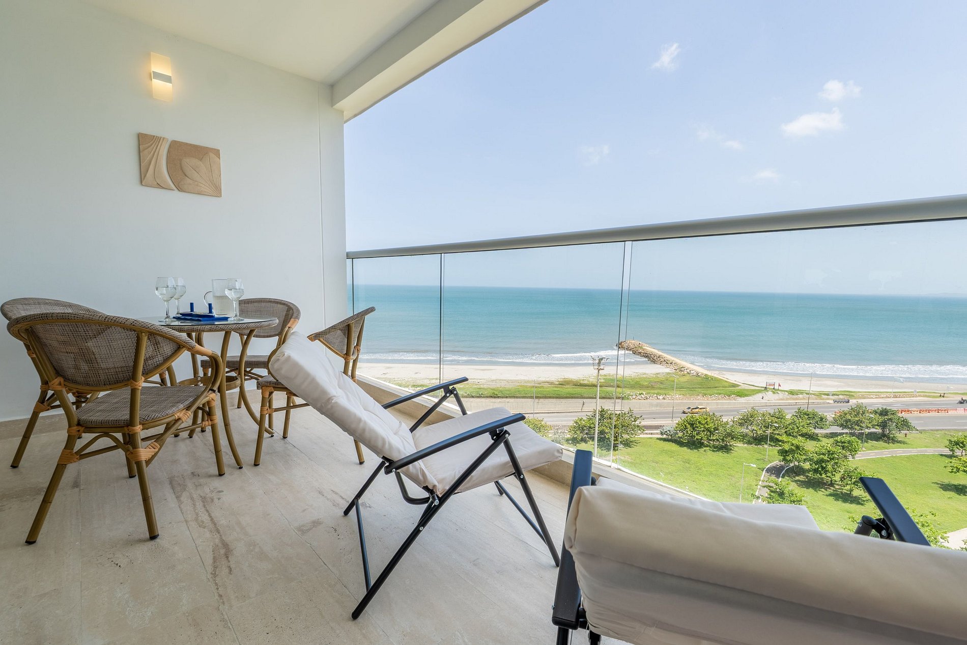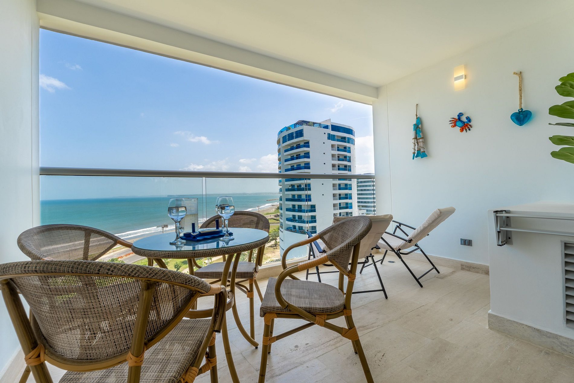 • Piso 9 con balcón privado amoblado y vista al mar, la Ciénaga y la ciudad