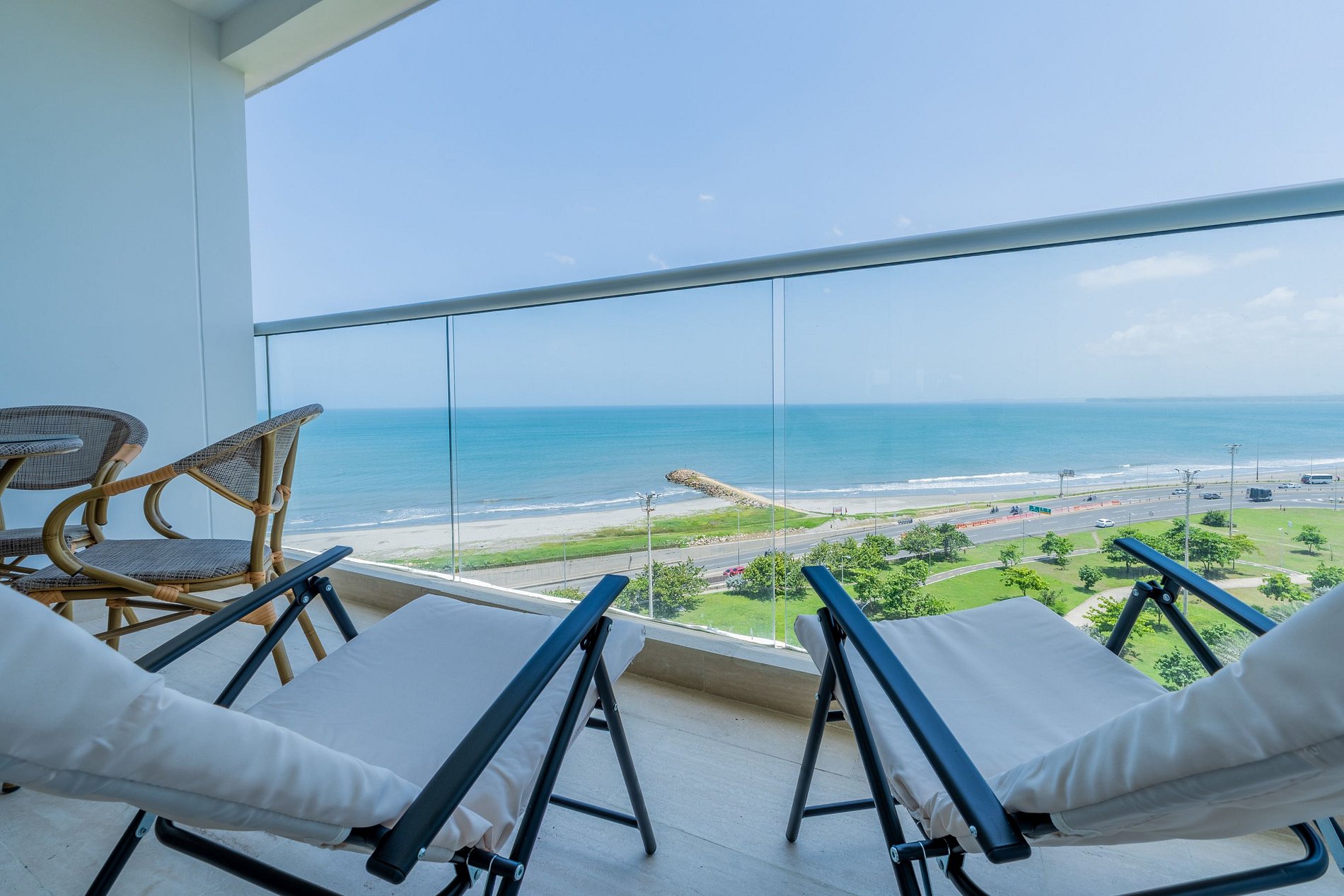 Suite en piso 9 con balcón amoblado y espectaculares vistas al mar, la Ciénaga y la ciudad. Cama Queen, sofá cama, sala luminosa, Smart TV, aire acondicionado y cocina equipada.